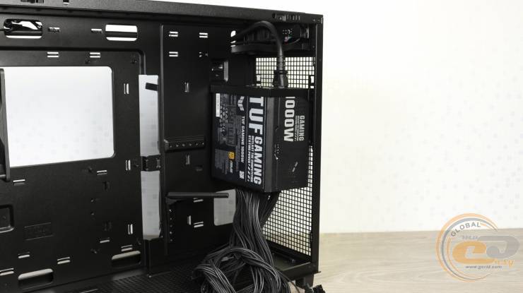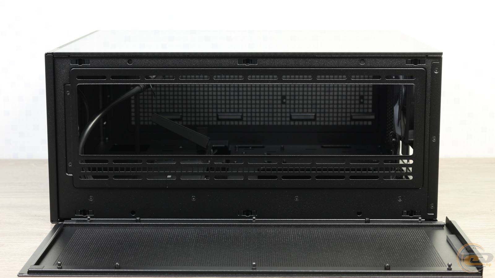 Длина совместимого блока питания формата ATX может достигать 180 мм. Для него на передней стенке предусмотрено три возможных вертикальных положения, учитывающих установку СЖО на верхней панели.