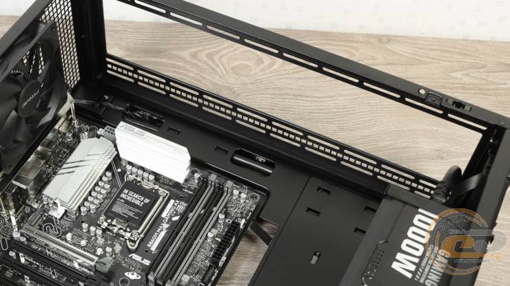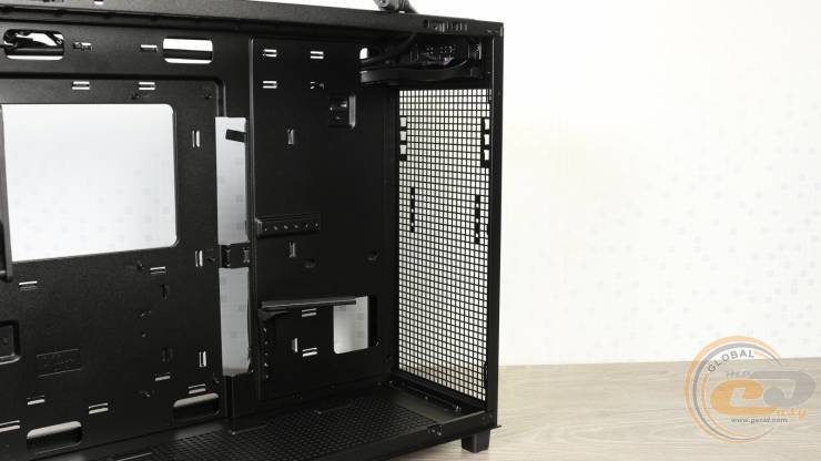 Под ней прячутся места для установки трех 120-мм или 140-мм вентиляторов или вообще СЖО с радиатором длиной до 360 мм.