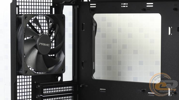 Левая боковина традиционно изготовлена из закаленного стекла толщиной 4 мм, а также содержит название серии PRIME.