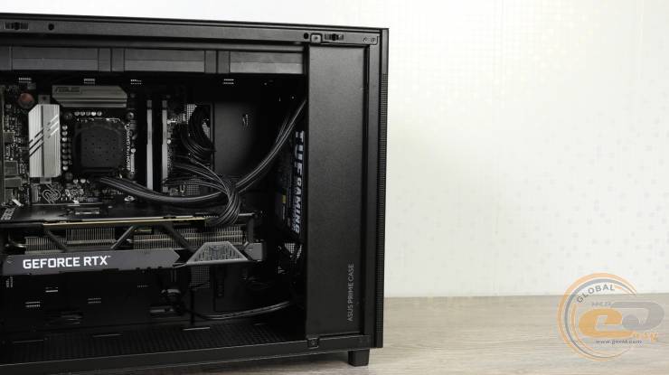 Поскольку перед нами увеличена вариация ASUS Prime AP201, то у нее тоже не возникнет проблем с эффективностью охлаждения большинства процессоров и видеокарт. Единственное, при подборе компонентов следует не забывать об ограничении максимальной длины видеоускорителя – 360 мм.