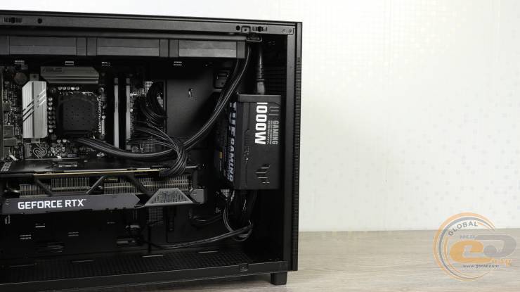 Температура окружающей среды на момент проведения тестирования составляла 23°С. Охлаждать компоненты в корпусе ASUS Prime AP303 помогали один корпусной вентилятор и 360 мм процессорная СЖО DeepCool LT720. Тыльная корпусная вертушка работала на максимальной скорости – 1500 об/мин, а вентиляторы на радиаторе СЖО – на 2100 об/мин. В BIOS материнской платы мы также активировали ASUS Performance Enhancement 3.0.
