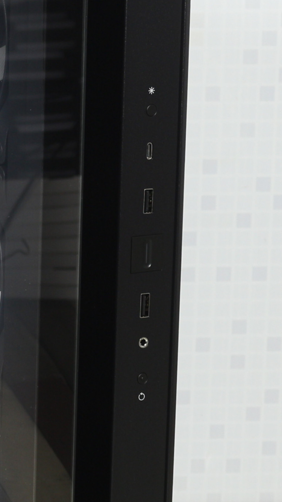 Справа разместились два порта USB 3.2 Gen 1 Type-A и один USB 3.2 Gen 2 Type-C. Кнопка запуска ПК имеет компактный белый индикатор с приглушенным свечением.