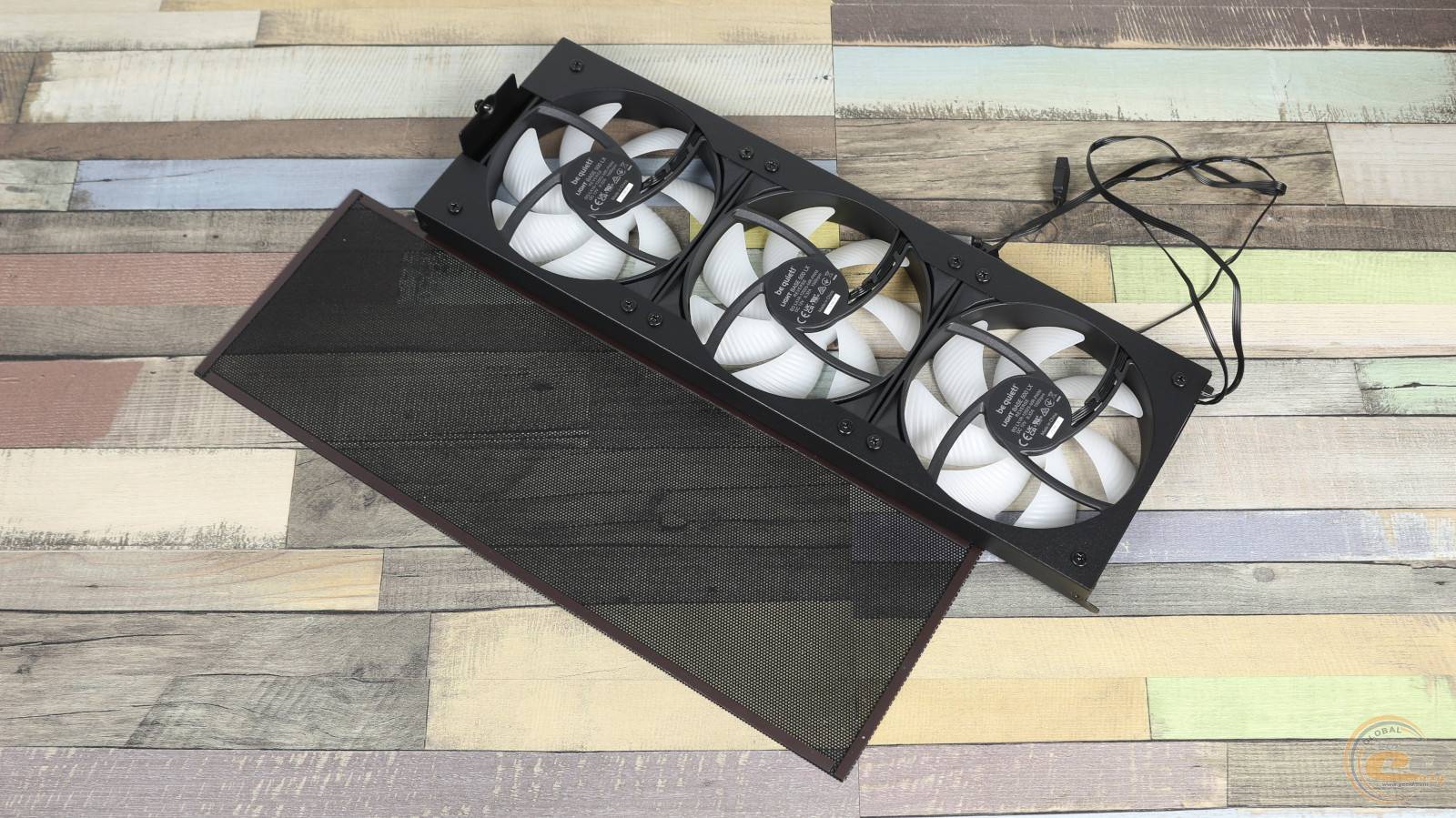 Фиксируется она тремя винтами и легко демонтируется по необходимости. Рядом находится упомянутое воздухозаборное отверстие, за которым скрыт съемный кронштейн с тремя 120-мм вентиляторами Light Wings LX PWM с реверсивными лопастями.