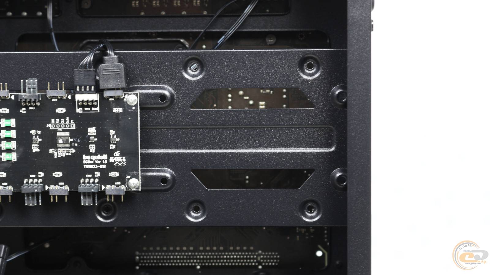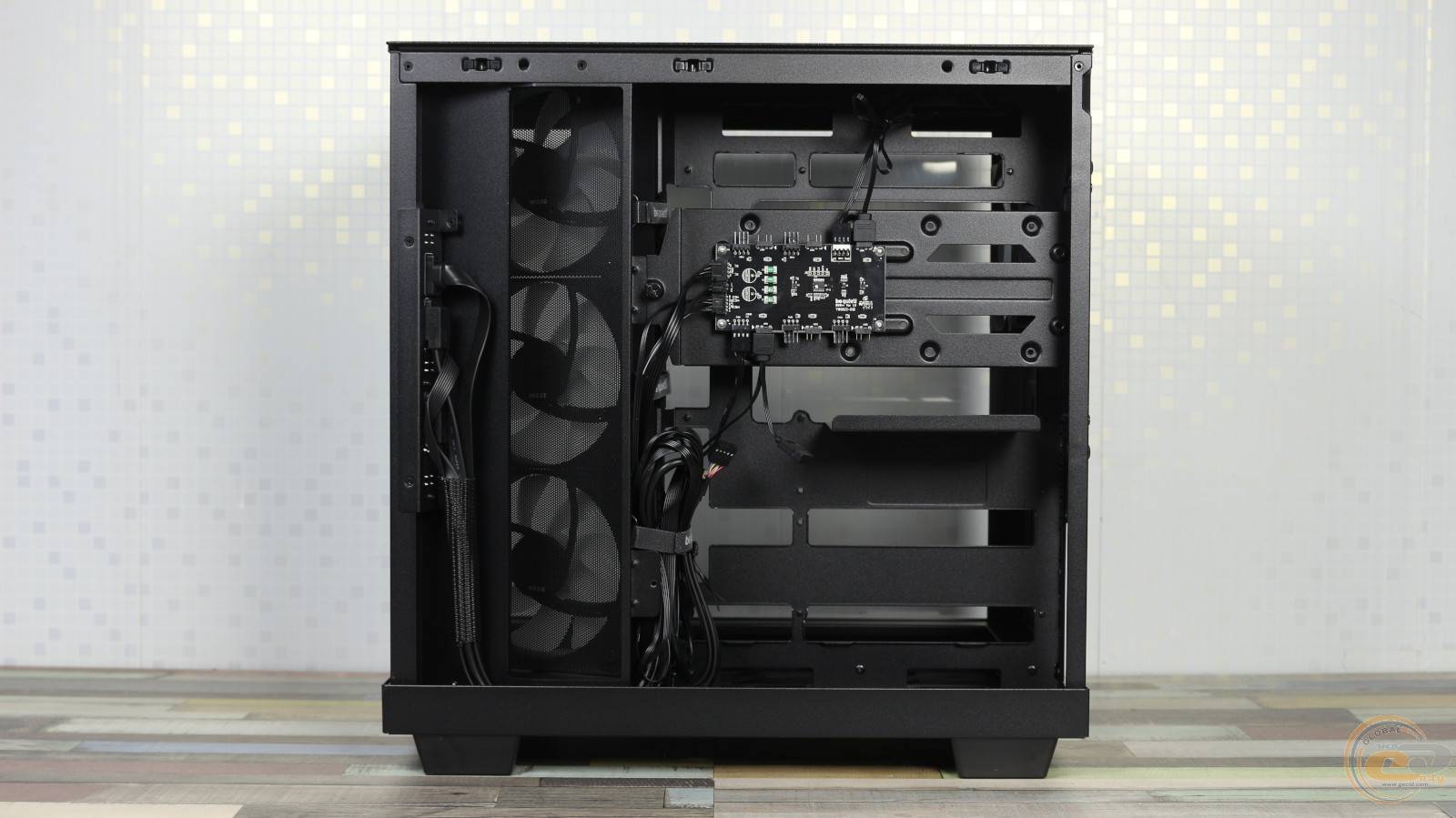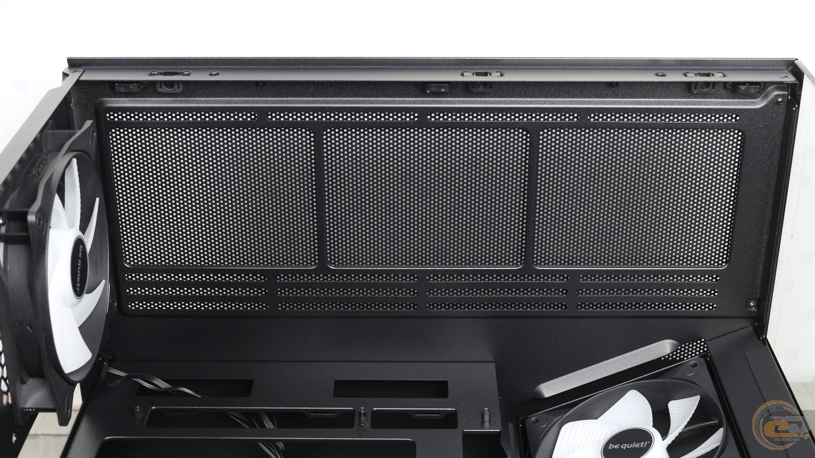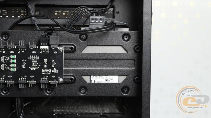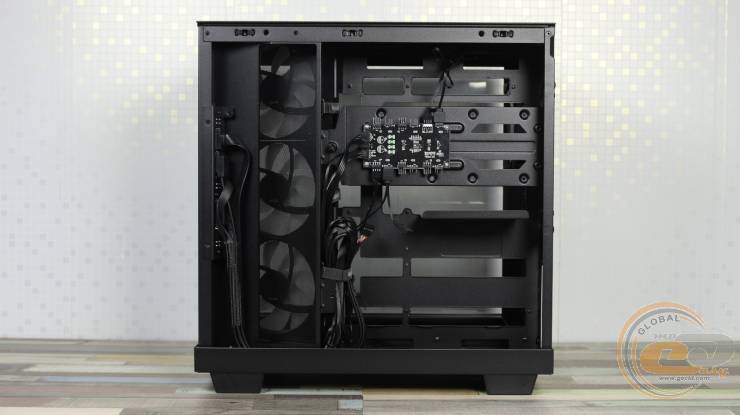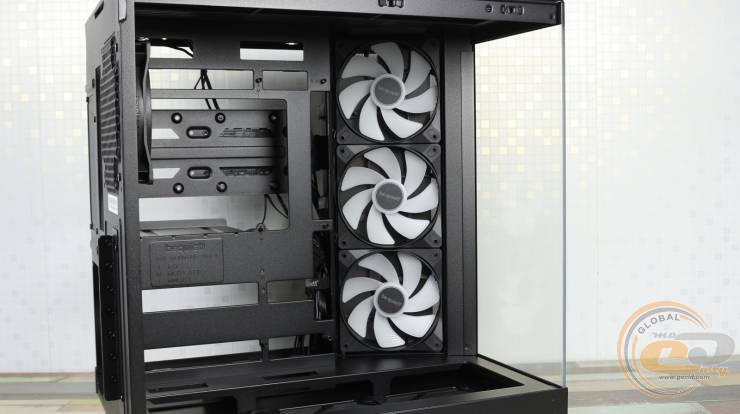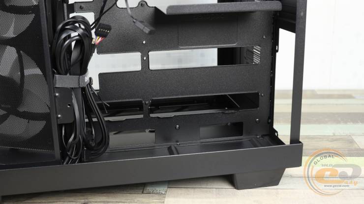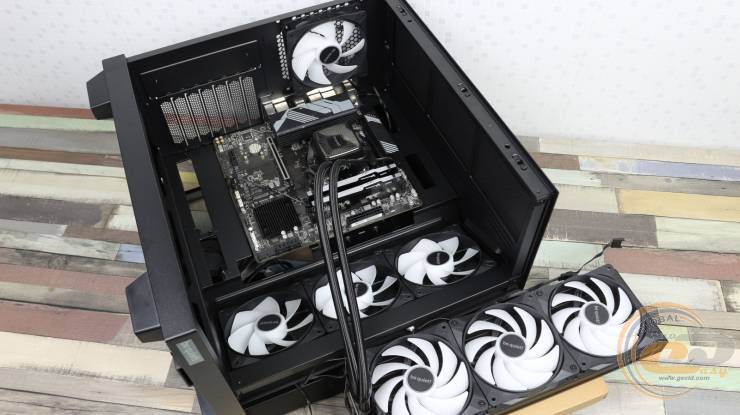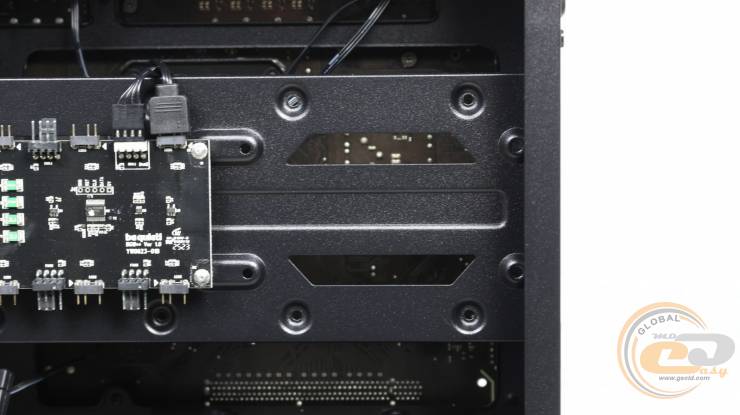 Установить сюда СЖО не удастся, однако углубленные посадочные отверстия позволяют аккуратно скрыть кабели «вертушек» за металлической панелью, сохраняя аккуратный вид внутреннего пространства.