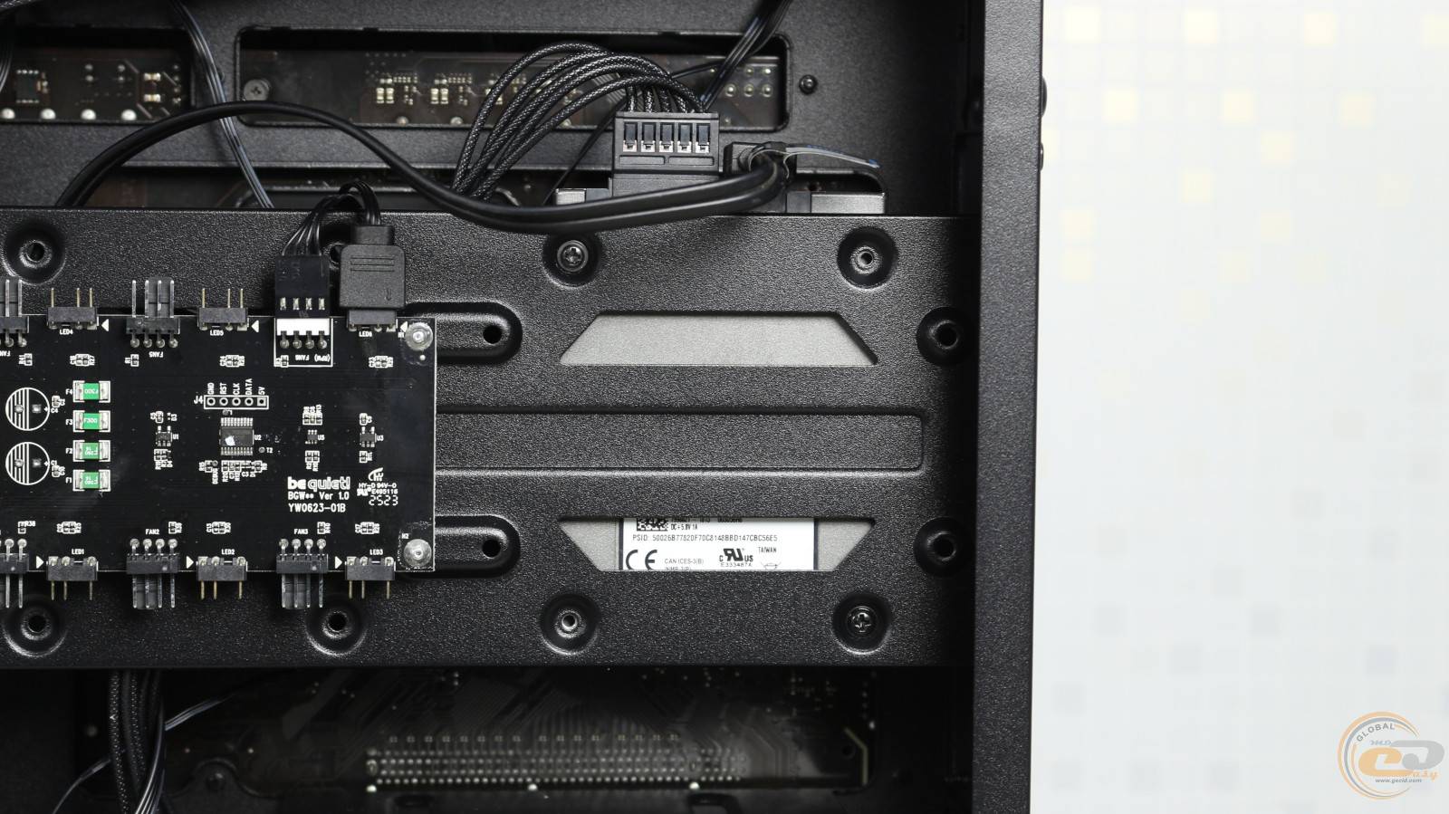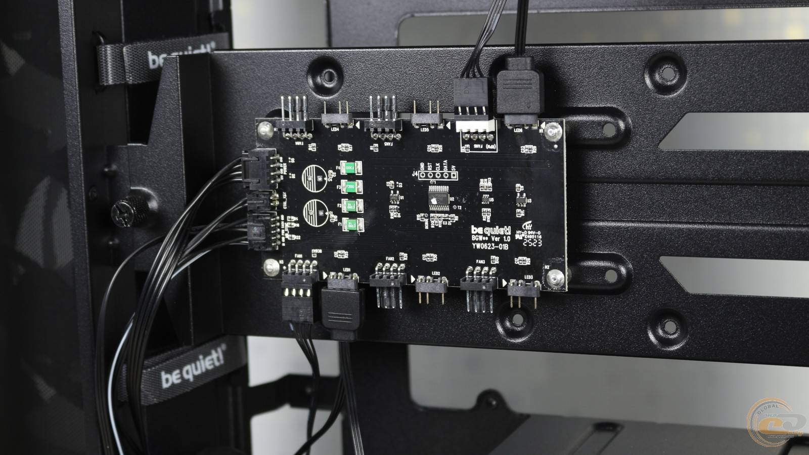 За поддоном материнской платы разместился концентратор ШИМ и ARGB, к которому получится подключить еще четыре вентилятора с адресной подсветкой. Питается он от отдельного кабеля SATA.