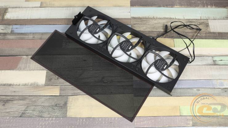 Вентиляторы прикрыты магнитным пылевым фильтром, доступ к которому всегда остается удобным. Сам кронштейн закреплен одним винтом, сидит довольно плотно и может быть вынут после демонтажа верхней крышки.