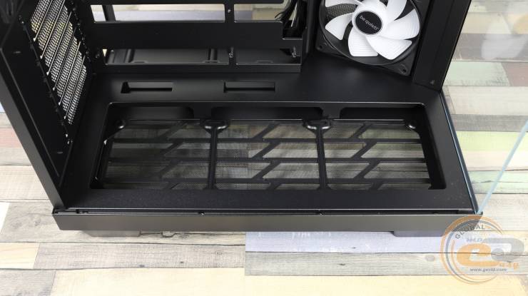 На дне корпуса установлен длинный нейлоновый фильтр, который выдвигается вперед и держится в пазах. Под ним – место для монтажа трех 120-мм вентиляторов.
