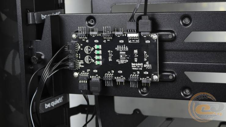 - в корпусе есть контроллер управления подсветкой и оборотами вентиляторов, к которому можно подсоединить шесть вертушек одновременно;