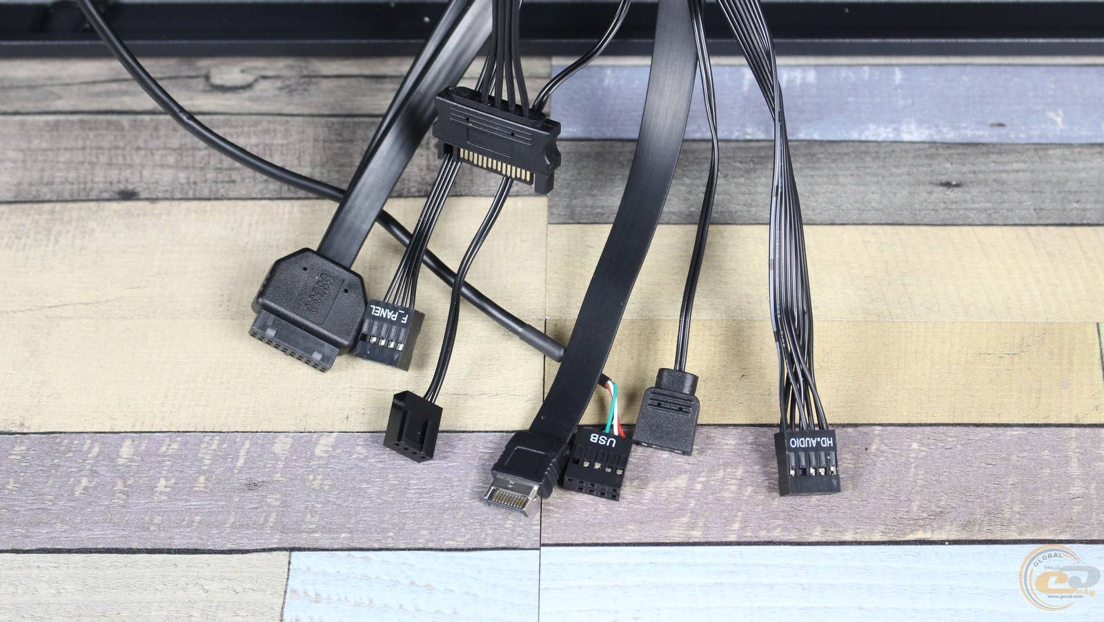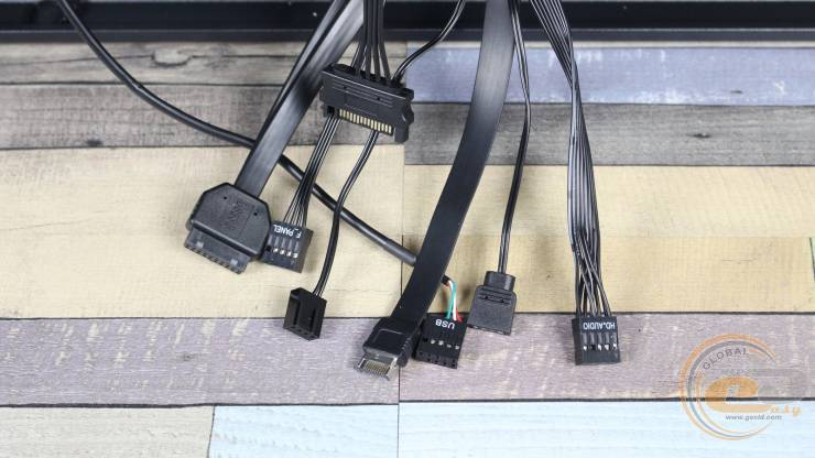 В левом углу установлена плата-хаб с очень удобным доступом, рассчитанная на подключение к шести вентиляторов с ARGB-подсветкой и комплектной LED-лентой. Питание платы осуществляется по 40-см коннектору SATA, а переключение восемнадцати пресетов подсветки – с помощью кнопки на боковой панели. Так, короткое нажатие последовательно изменяет режимы, удержание в течение 3 секунд – включает синхронизацию свечения с материнской платой, а в течение 6 секунд – полностью выключает подсветку.