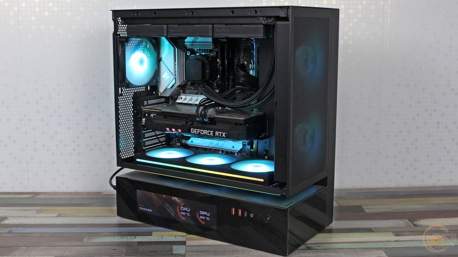 Процессорная СЖО ID COOLING DX360 MAX работала на максимальной скорости вентиляторов, тогда как частоту вращения вертушки видеокарты мы ограничили до 70%. В свою очередь скорость вращения корпусных элементов была максимальной, но она не превышала 1600 об/мин, поэтому их шум был незаметен на фоне других компонентов. Температура окружающей среды составила +23°C.
