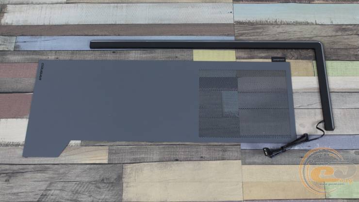 И, в завершение внешнего обзора – несколько слов о боковых панелях. Права выполнена из цельного металлического листа толщиной 0,79 мм – это не самый маленький показатель, но и далеко не рекордный. На ней предусмотрены перфорации, очевидно рассчитанные на установку сзади пары 120-мм пропеллеров.