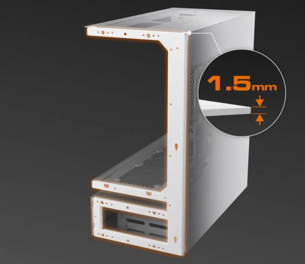 Чтобы со временем верхняя часть не проседала под тяжестью комплектующих, производитель оснастил конструкцию стальной рамой толщиной 1,5 мм.