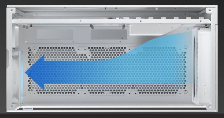 Дизайн с эффектом «парения» вместе с подсветкой комплектных вентиляторов и LED-ленты создает стильный ансамбль, а наличие ARGB-хаба с готовыми режимами придает удобства пользователям, которые хотят быстро настроить свечение без лишних сложностей.