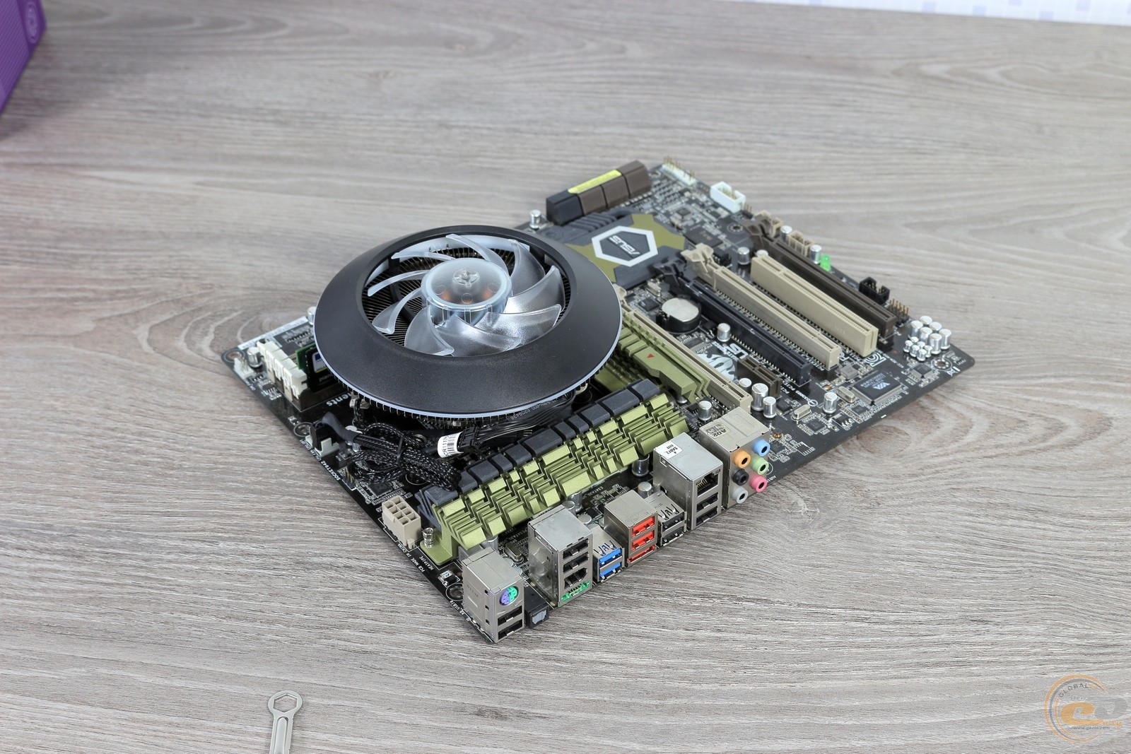 Благодаря чашеобразной форме охладитель не конфликтует с охлаждением VRM на материнской плате, хотя и нависает над ним, и не препятствует монтажу модулей памяти стандартной высоты (до 34,5 мм), но версии с высокими радиаторами в первые два DIMM-слота могут не поместиться.