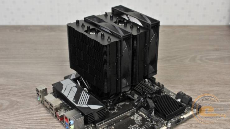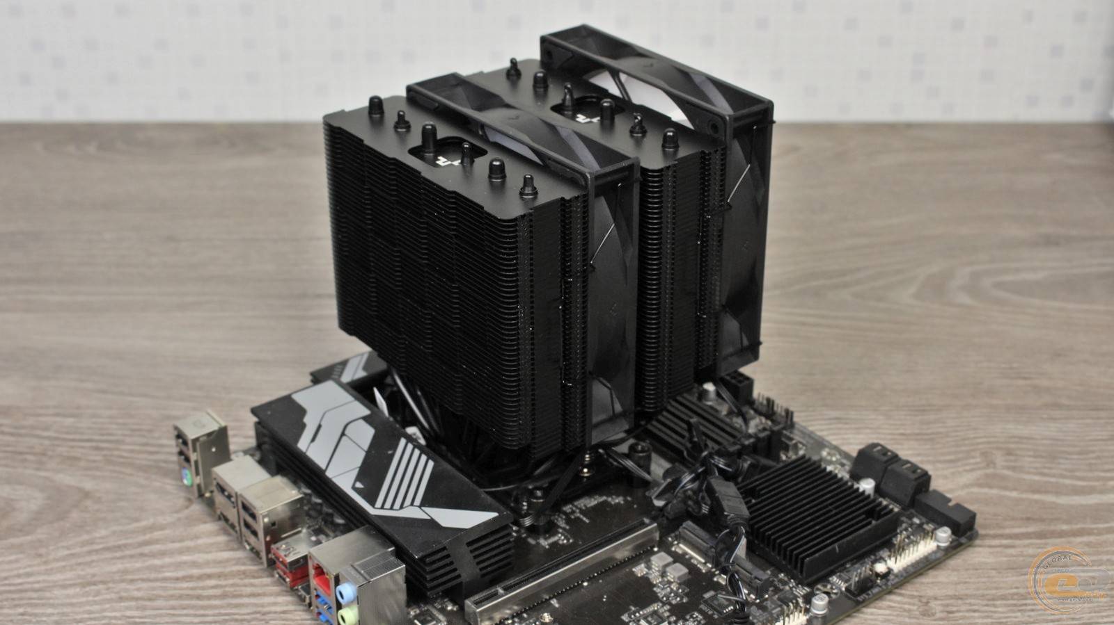 В собранном виде кулер смотрится массивно, но одновременно гармонично дополняет материнскую плату в темных тонах. Его габариты составляют 127×136×157 мм, что обеспечивает совместимость с многими современными ATX-корпусами.