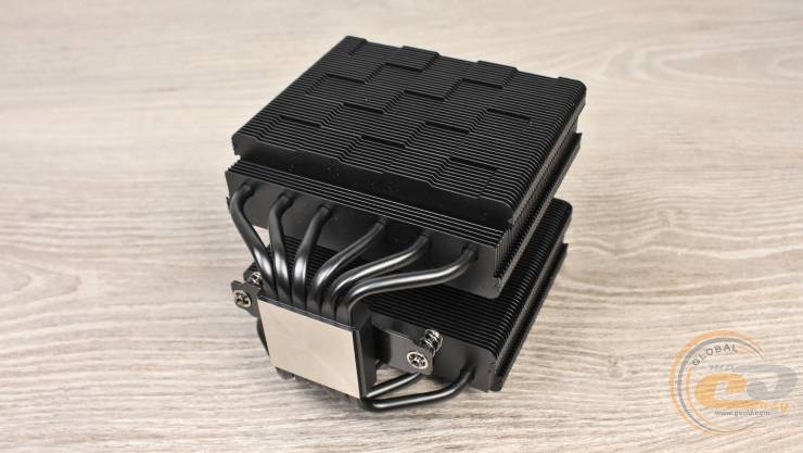 В основе конструкции лежат шесть 6-мм тепловых трубок, равномерно распределенных по ширине обеих радиаторных башен. Алюминиевые пластины толщиной 0,3 мм расположены с интервалом около 2 мм и имеют оригинальную форму, благодаря которой при взгляде сбоку образуется узор в виде шахматной доски.