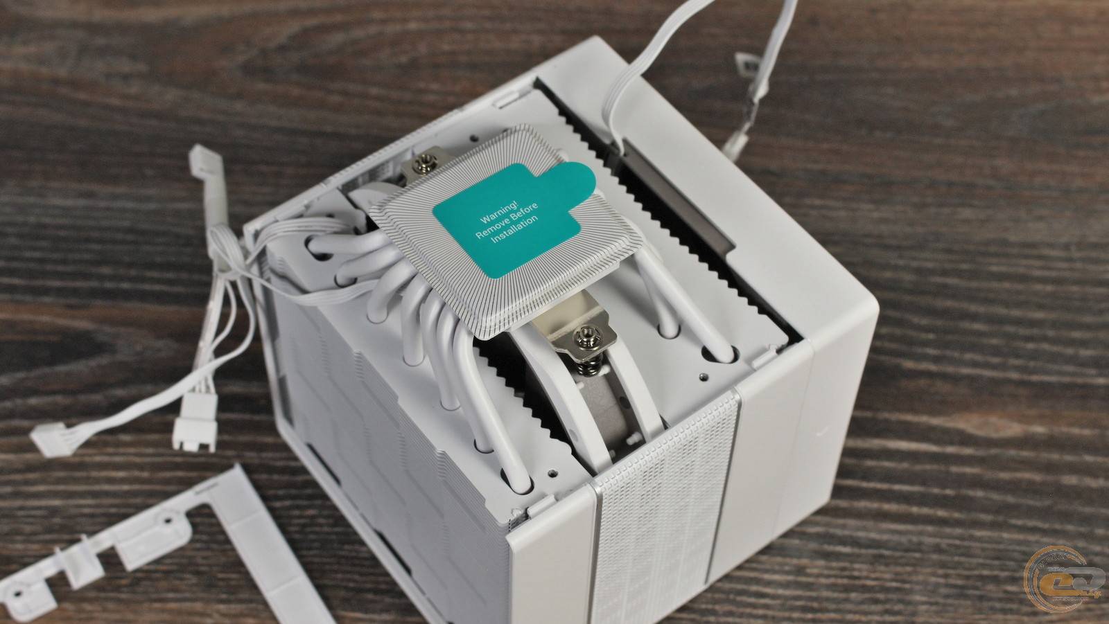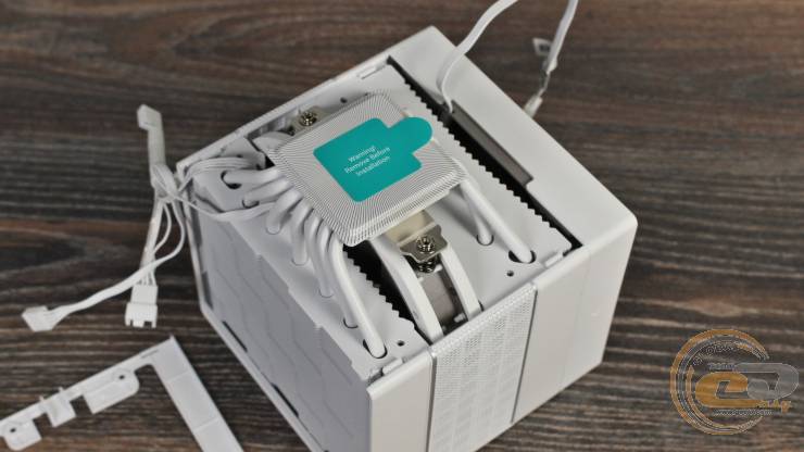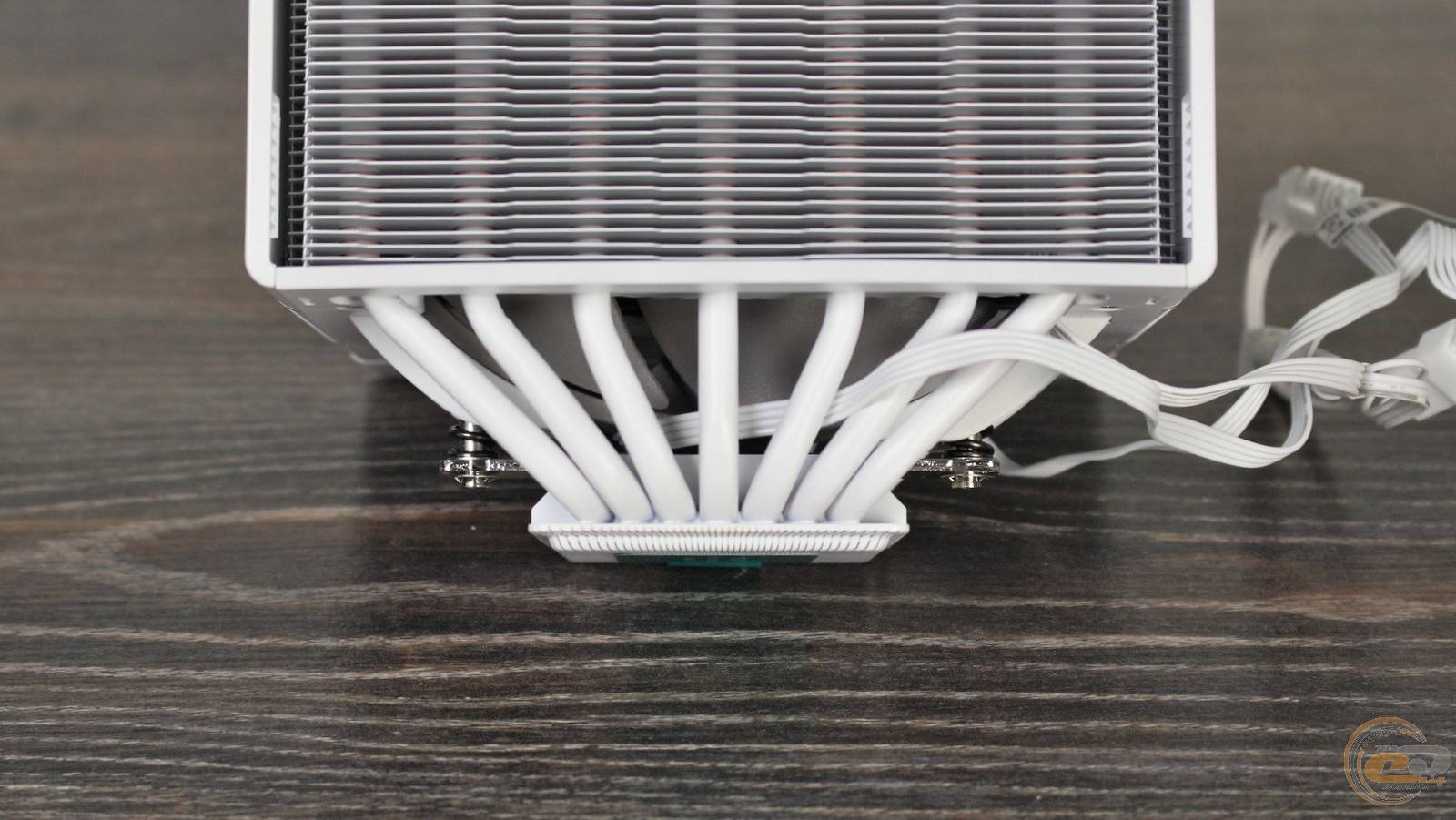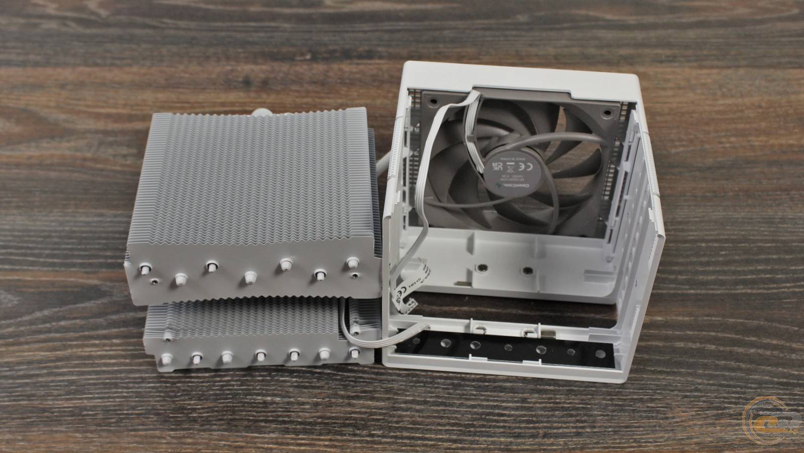 Внешне и по конструкции DeepCool ASSASSIN VC ELITE WH во многом напоминает хорошо знакомый нам DeepCool ASSASSIN IV, который мы тестировали несколько лет назад. Ключевым отличием стало полностью белое исполнение, идеально подходящее к светлым системам. В то же время, вентиляторы получили лопасти с легким коричневатым оттенком — выглядит нестандартно, свежо и действительно привлекательно.