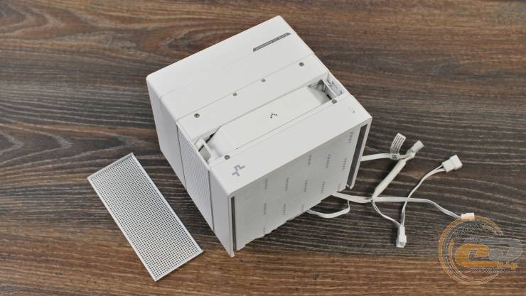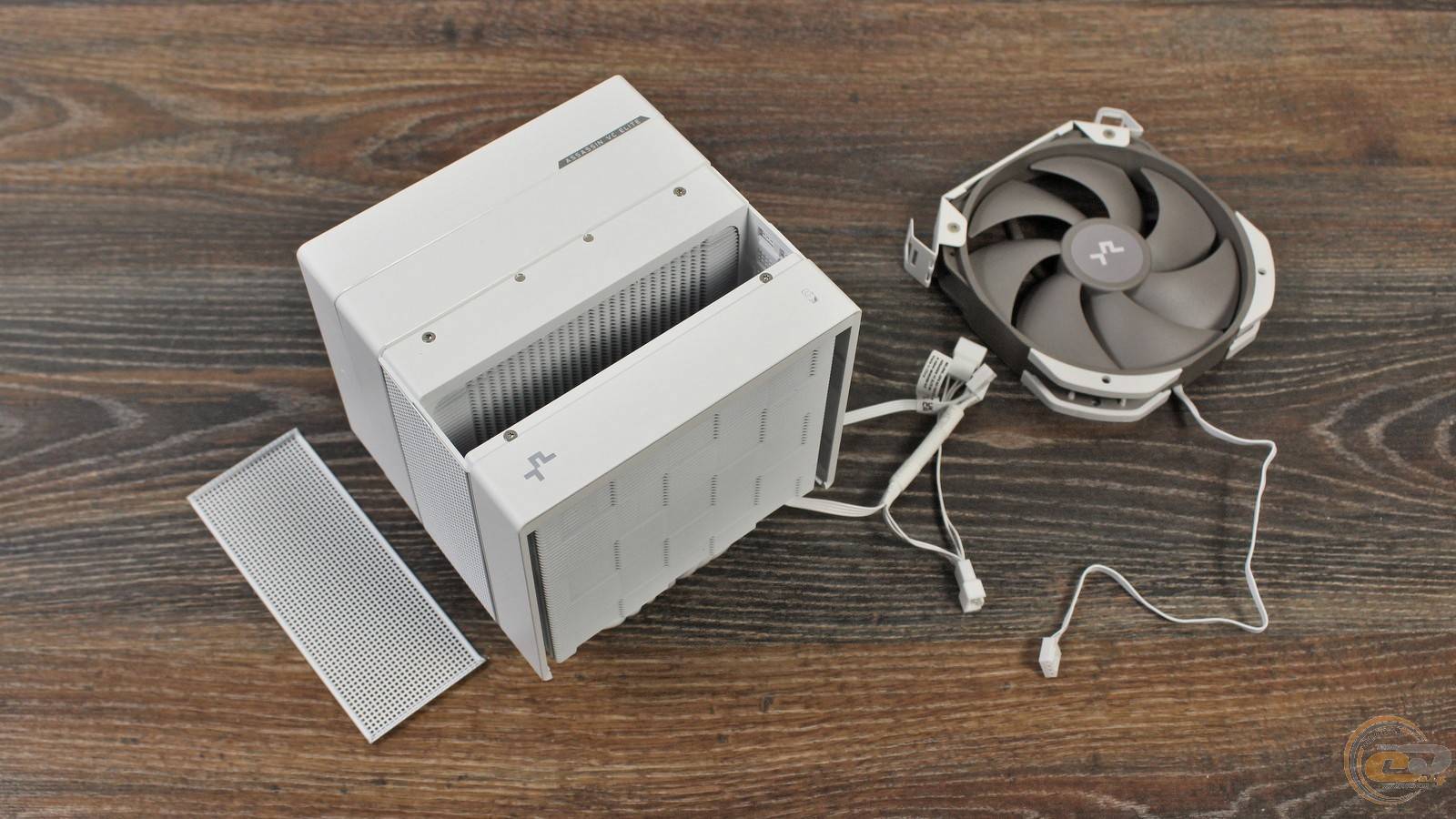 Перфорированная сеточка с магнитным крепежем открывает доступ к вентилятору DeepCool DFr1402512CH размерами 140 х 140 х 25 мм. Фиксируется он с помощью подпружиненных зажимов в верхней части.
