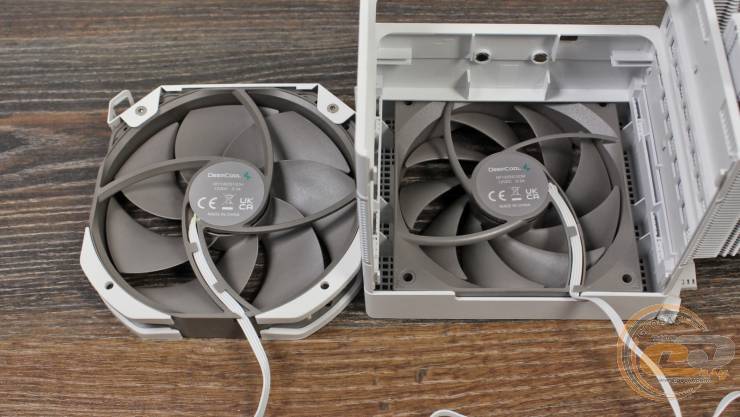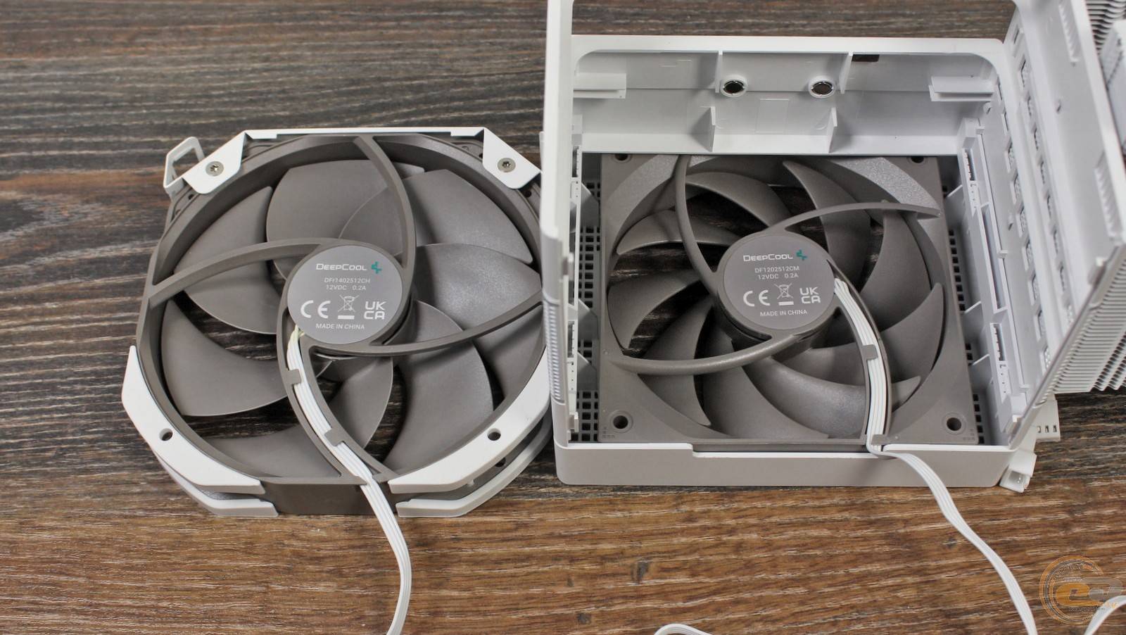 Его дополняет более компактный DeepCool DF1202512CM формата 120×120×25 мм. Оба пропеллера оснащены надежными гидродинамическими подшипниками (FDB) и потребляют до 2,4 Вт (0,2 А при 12 В).