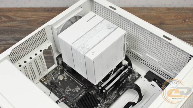 Как и ожидалось, кулер совсем не перекрывает DIMM-слоты.