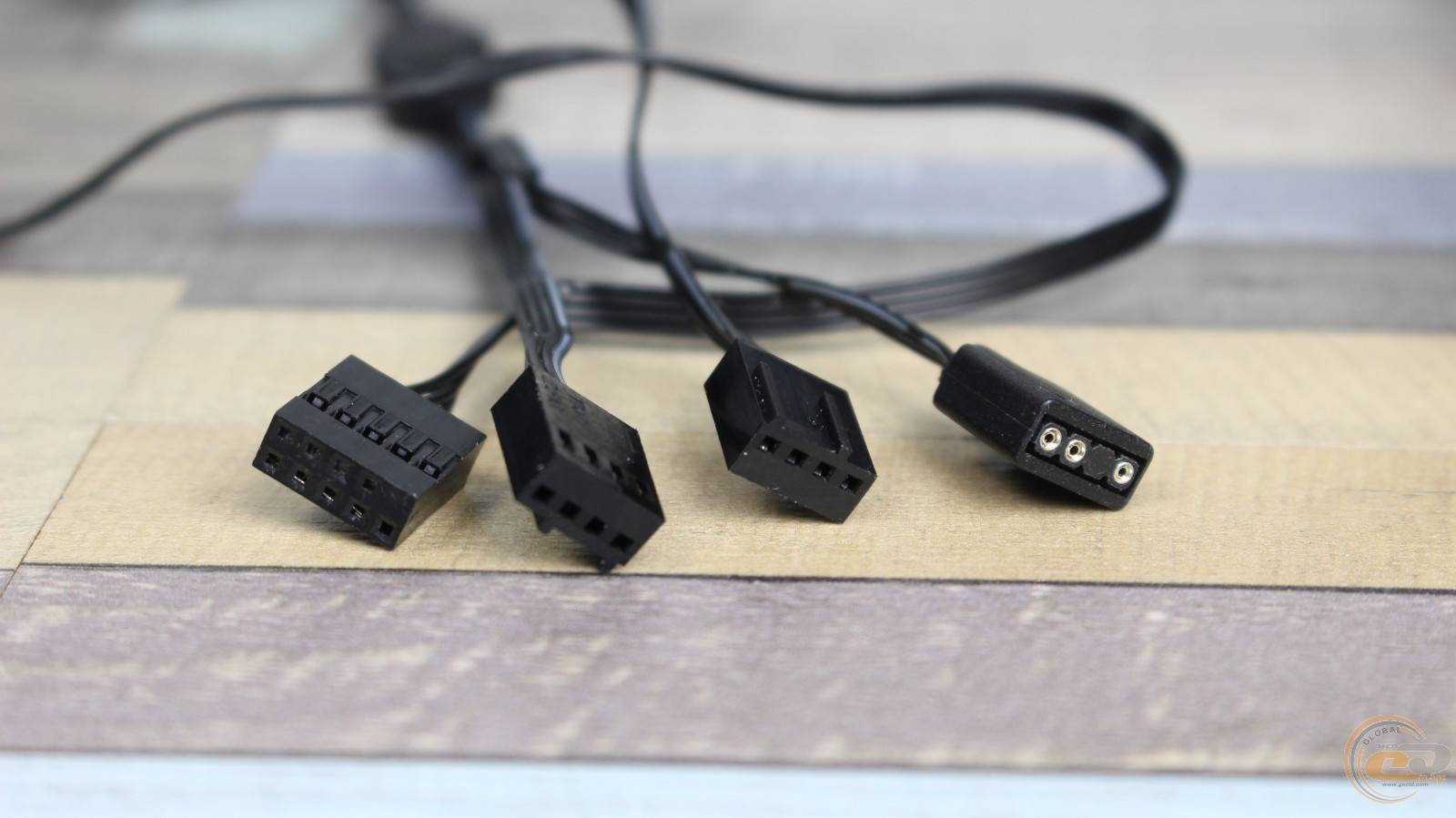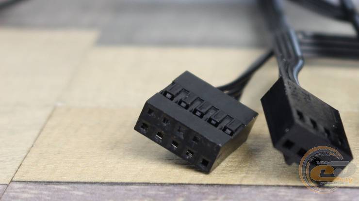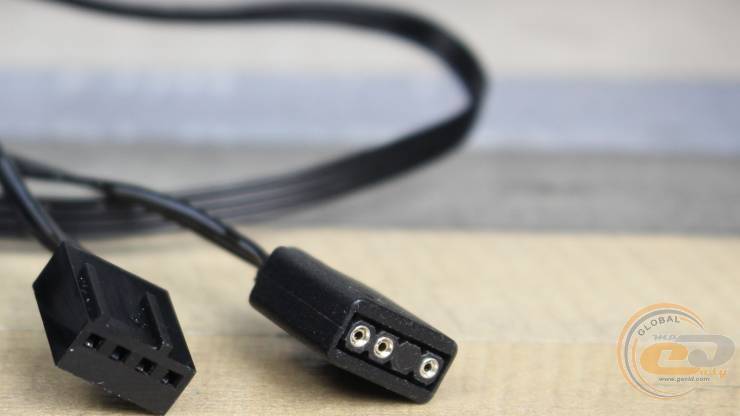 К нему подключается комплектный кабель-переходник со стандартными для материнских плат или контроллеров: 4-контактным для питания и 3-контактным для ARGB-подсветки.