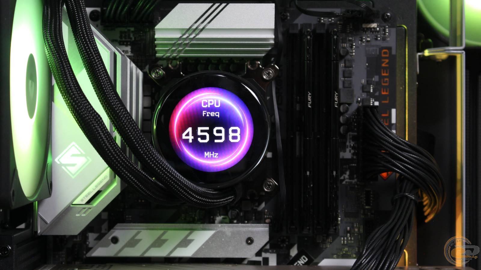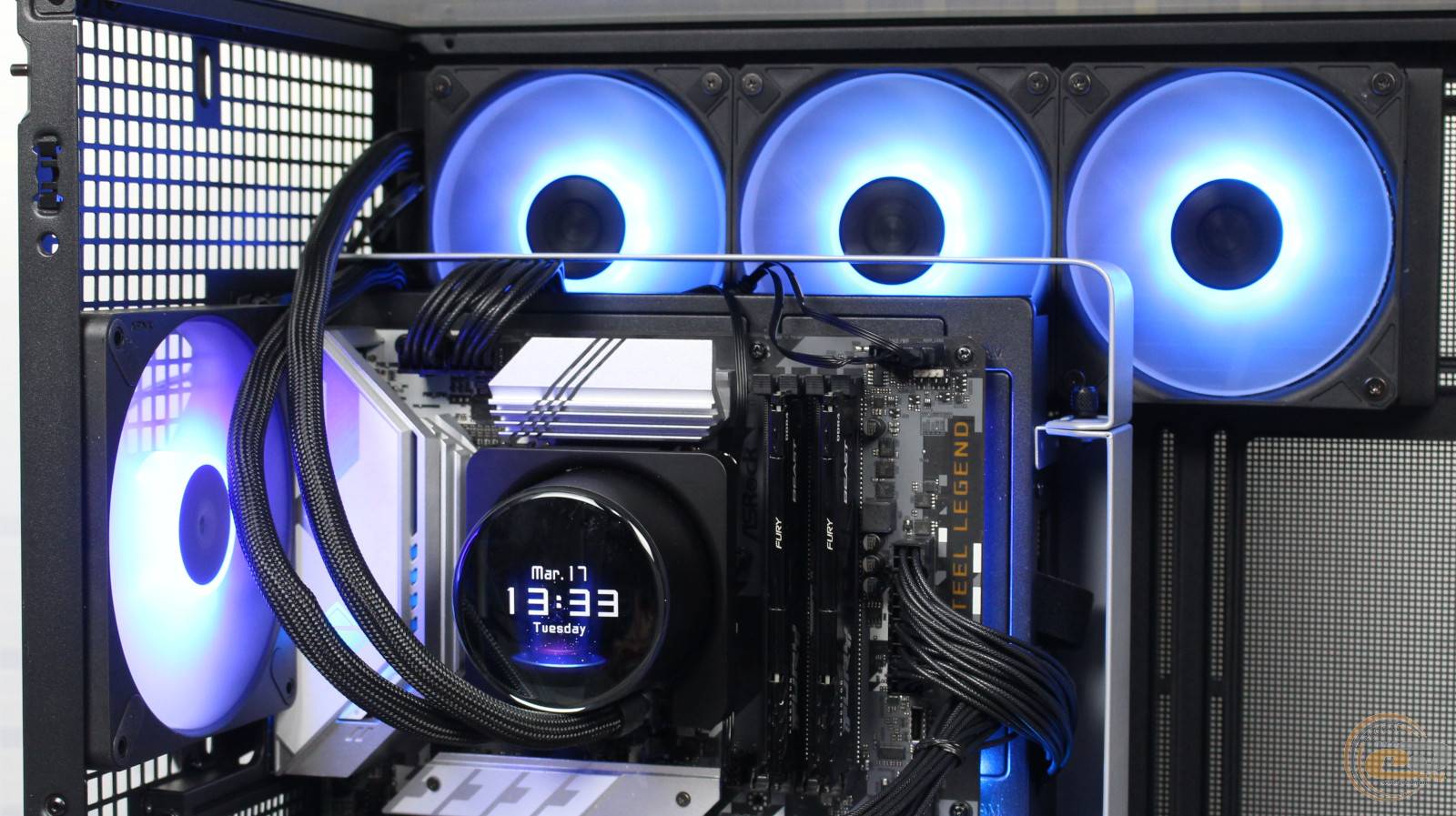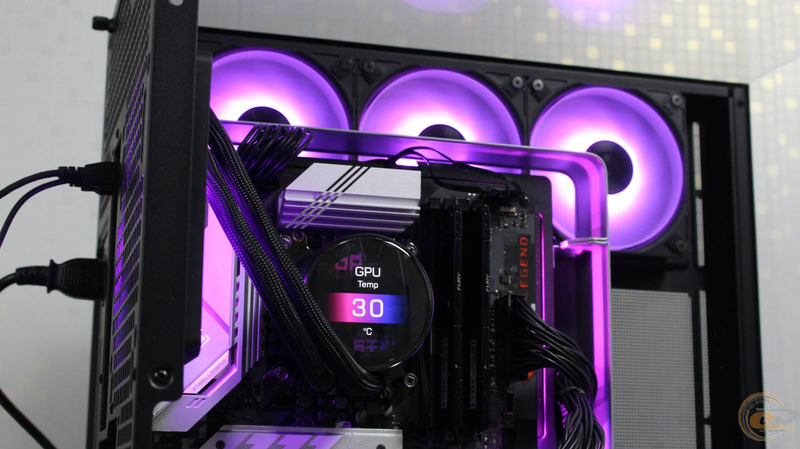 Цвета подсветки вентиляторов оказались действительно насыщенными и яркими. Ну а имеющийся на водоблоке экран поможет добавить определенной изюминки вашей сборке.