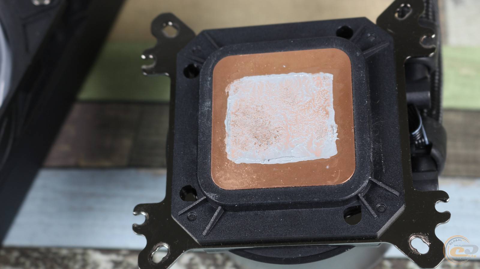 Термоинтерфейс на ней отсутствует – вместо него наклеена прозрачная защитная пленка с текстовым предупреждением об установке. Поэтому в комплект поставки предусмотрительно добавлена фирменная термопаста.
