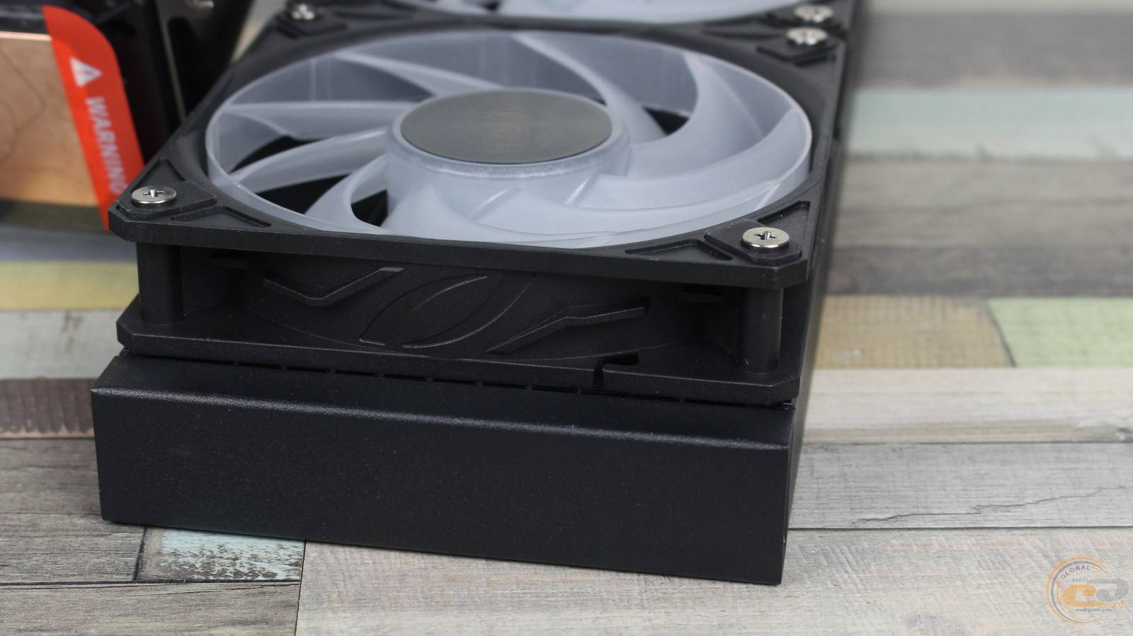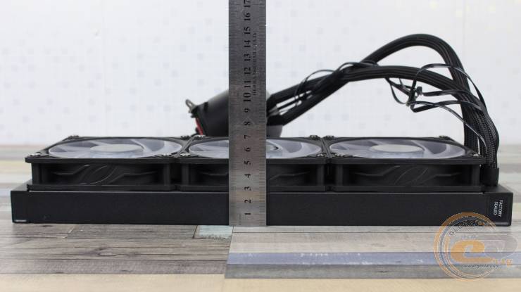 Толщина системы вместе с вентиляторами, учитывая головки крепежных винтов, достигает 56 мм в профиль.