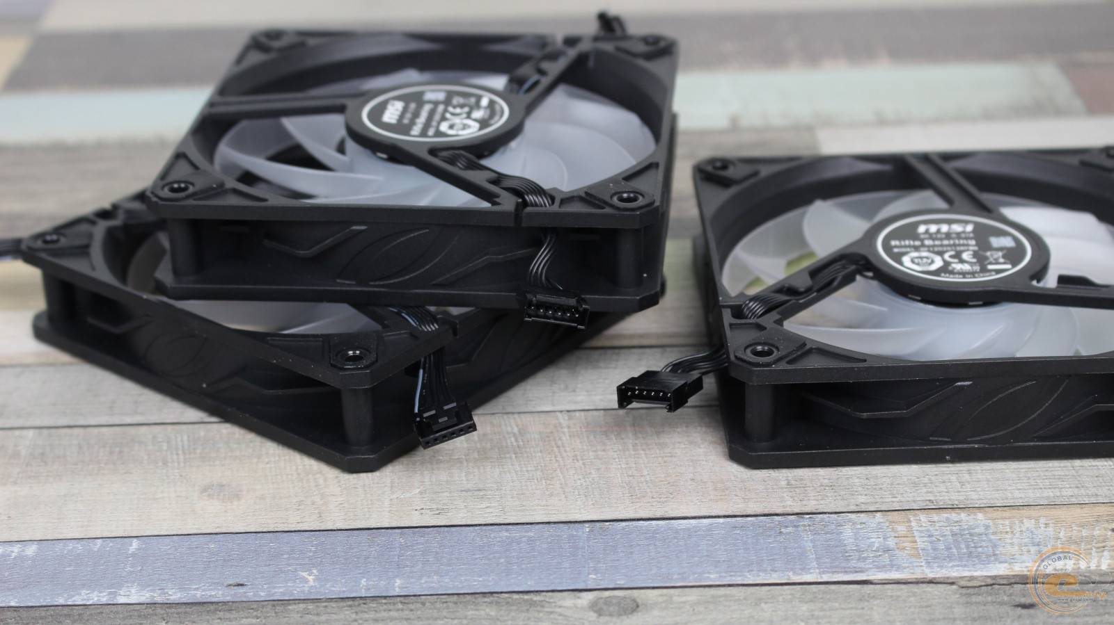 Для подсветки и питания каждый комплектный вентилятор использует нестандартный 6-контактный кабель без оплетки длиной около 10 см. Между собой они соединены последовательно. А уже от крайней вертушки идет кабель без оплетки длиной 80 см со штекером MSI EZ Сonn.