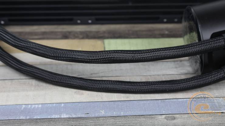 MSI MPG CORELIQUID P13 360 использует типовую схему с размещением помпы в водоблоке и соединением ее гибкими шлангами с радиатором. Трубки при этом изготовлены из этилен-пропиленового каучука, оплетены нейлоном и имеют длину 390 мм.
