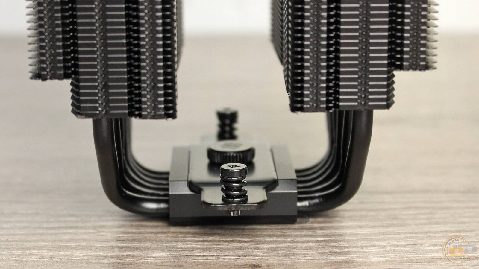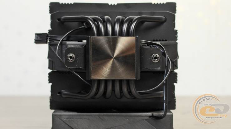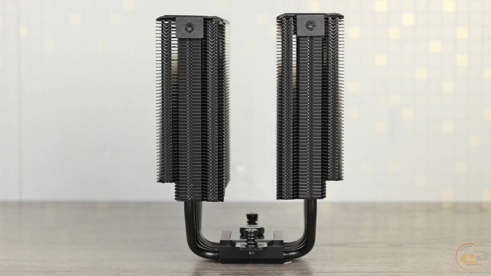 При этом тепловые трубки равномерно распределены по ширине обеих радиаторных башен. Общий вес радиатора без вертушки при этом составляет 869 г. Дополнительно обратим ваше внимание на то, что производитель использовал припой для лучшего контакта тепловых трубок с ребрами радиатора, а не метод запрессовки.