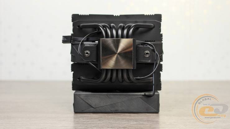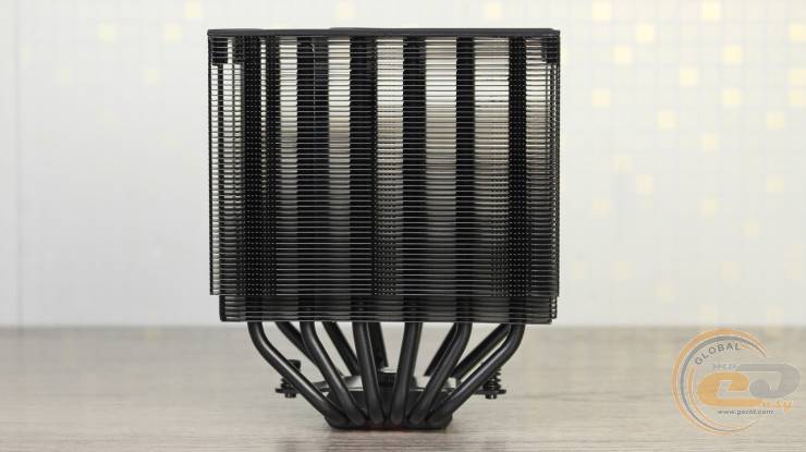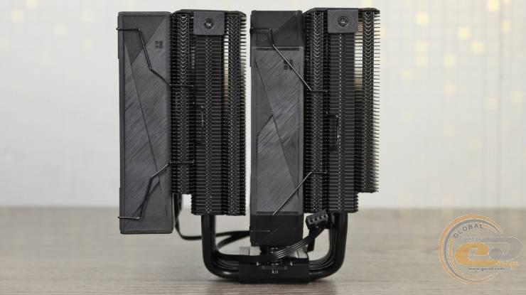 Эту модель также не обошли современные веяния, поэтому все ее элементы выполнены в черном цвете. Высота этого кулера с учетом основания и тепловых трубок составляет 158 мм.