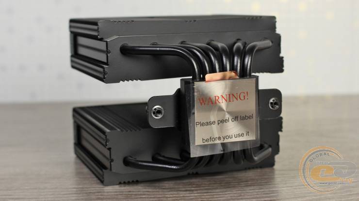 На основу наклеена прозрачная защитная пленка с текстовым предупреждением по установке. Термоинтерфейс из коробки не нанесен, зато присутствует в комплекте поставки.