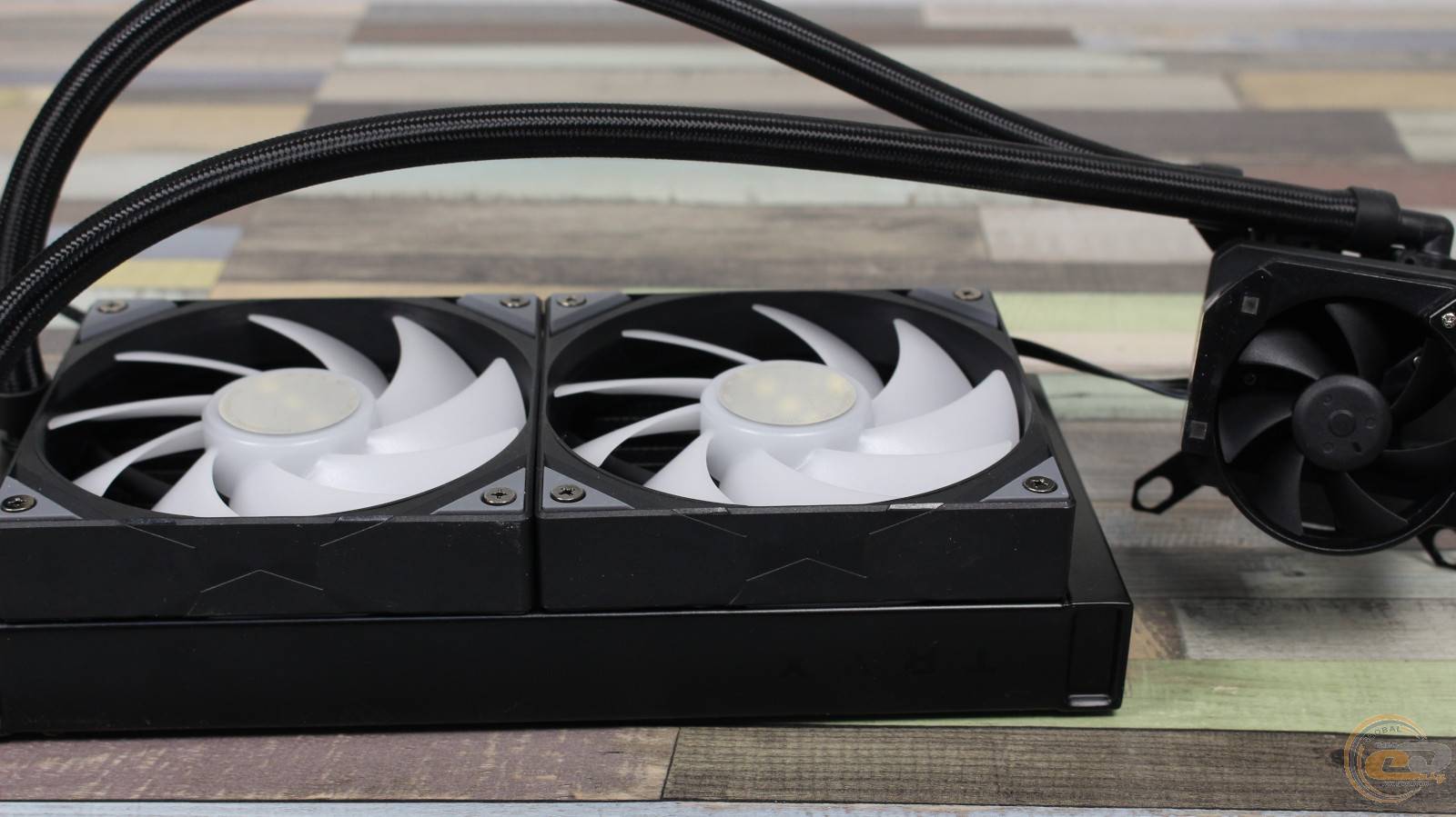 Кроме системы жидкостного охлаждения, на которой изготовителем заранее установлены два вентилятора, в комплекте поставки присутствуют: