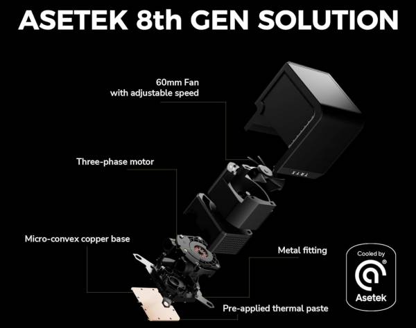 Он имеет прямоугольную форму и встроенный 60-мм вентилятор на торце, который обеспечивает охлаждение зоны VRM. Скорость вращения его лопастей регулируется ШИМ методом в диапазоне 500 – 3900 об/мин.