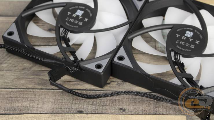Обдувают радиатор два 120-мм вентилятора TRYX ROTA 120 ARGB с девятью лопастями.
