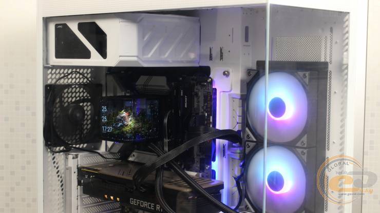 Изогнутый AMOLED-дисплей и вентиляторы с иллюминацией обязательно добавят эстетической изюминки системе, собранной в корпусе с панорамными стеклянными панелями.