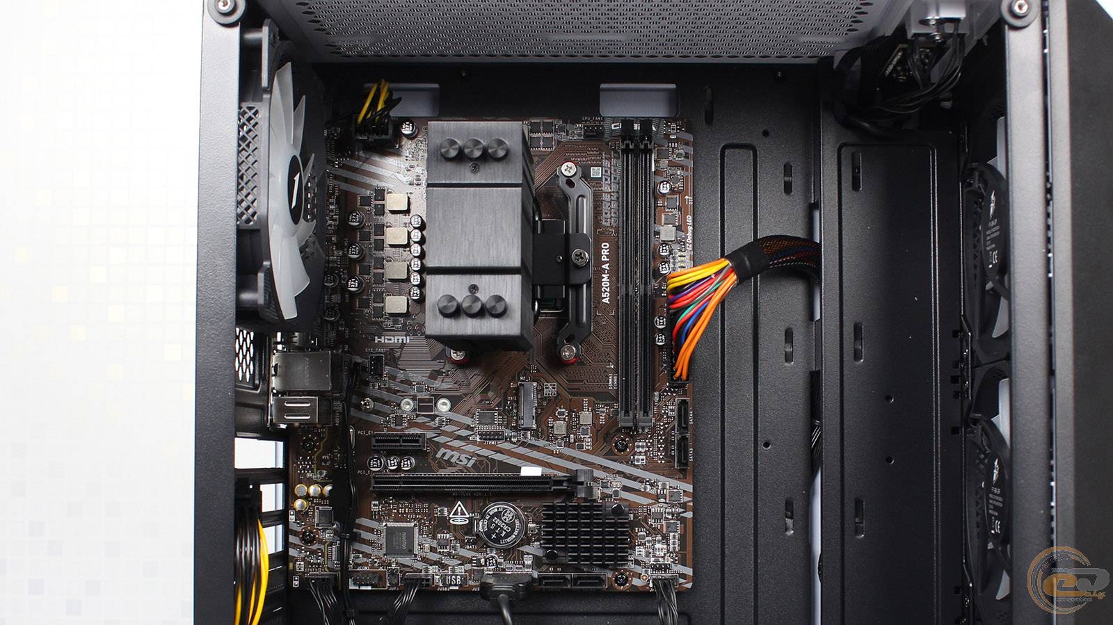 За основу взята MSI A520M-A PRO – простая, но понятная материнская плата на чипсете A520. Здесь нет ставки на разгон или чрезмерную функциональность, но есть все необходимое для построения доступной системы на AM4. Она хорошо вписывается в концепцию сборки, где главный акцент сделан не на дополнительных возможностях платы, а на том, чтобы дать пользователю рабочий фундамент без лишней переплаты.