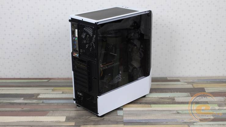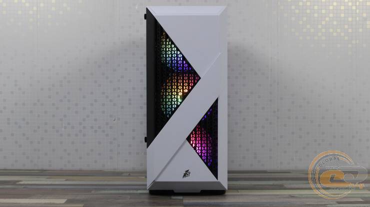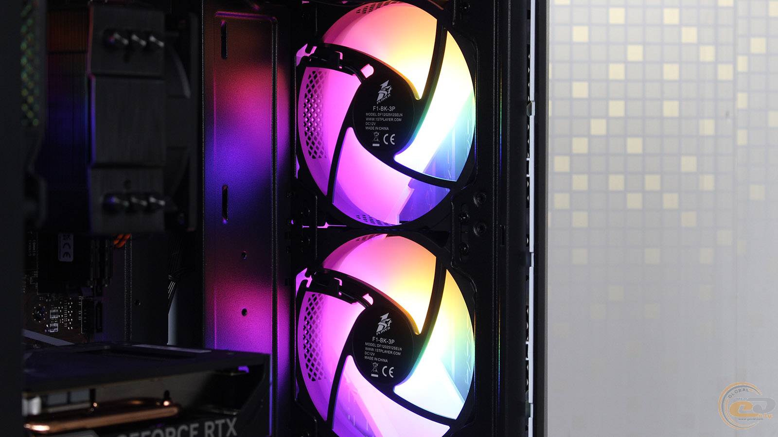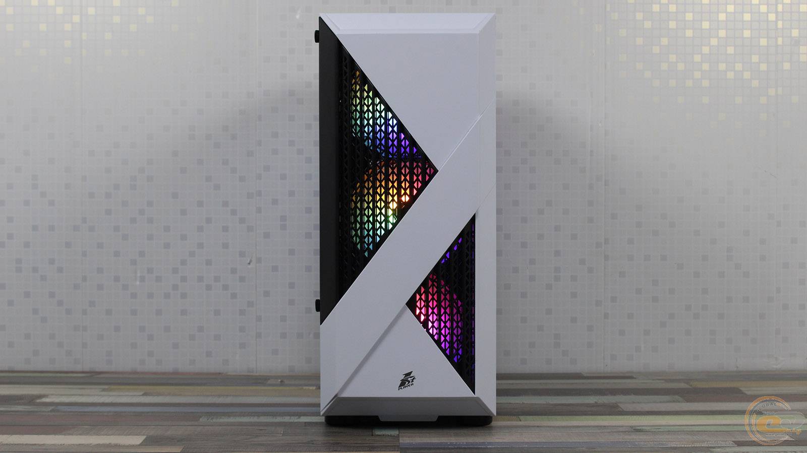 А вот 1STPLAYER F3-A-4F1-WH – это уже корпус, причем сразу в белом исполнении, хорошо вписывающийся в общую стилистику сборки. Он выглядит довольно современно с прозрачной боковой панелью, что позволяет рассмотреть комплектующие внутри. При этом «из коробки» предусмотрено четыре установленных вентилятора, что положительно влияет на общий воздушный поток в системе. Правда, бесследно для акустического комфорта это не проходит — под погрузкой их работа все же становится заметной. Впрочем, для бюджетного сегмента такой баланс между охлаждением и шумом выглядит вполне ожидаемым и уместным.