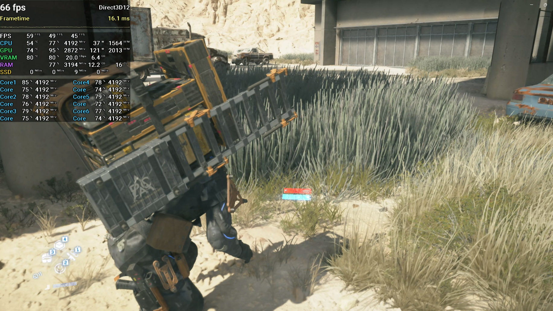 В Death Stranding 2: On The Beach также приятно чувствуется хорошая оптимизация: на высоких настройках с DLAA система без проблем справляется с нагрузкой, обеспечивая стабильный и комфортный геймплей. Даже при передвижении по сложным локациям не возникает ощутимых проседаний или дискомфорта — все работает плавно и предсказуемо, что позволяет полностью сосредоточиться на сюжете и борьбе с «лицами».