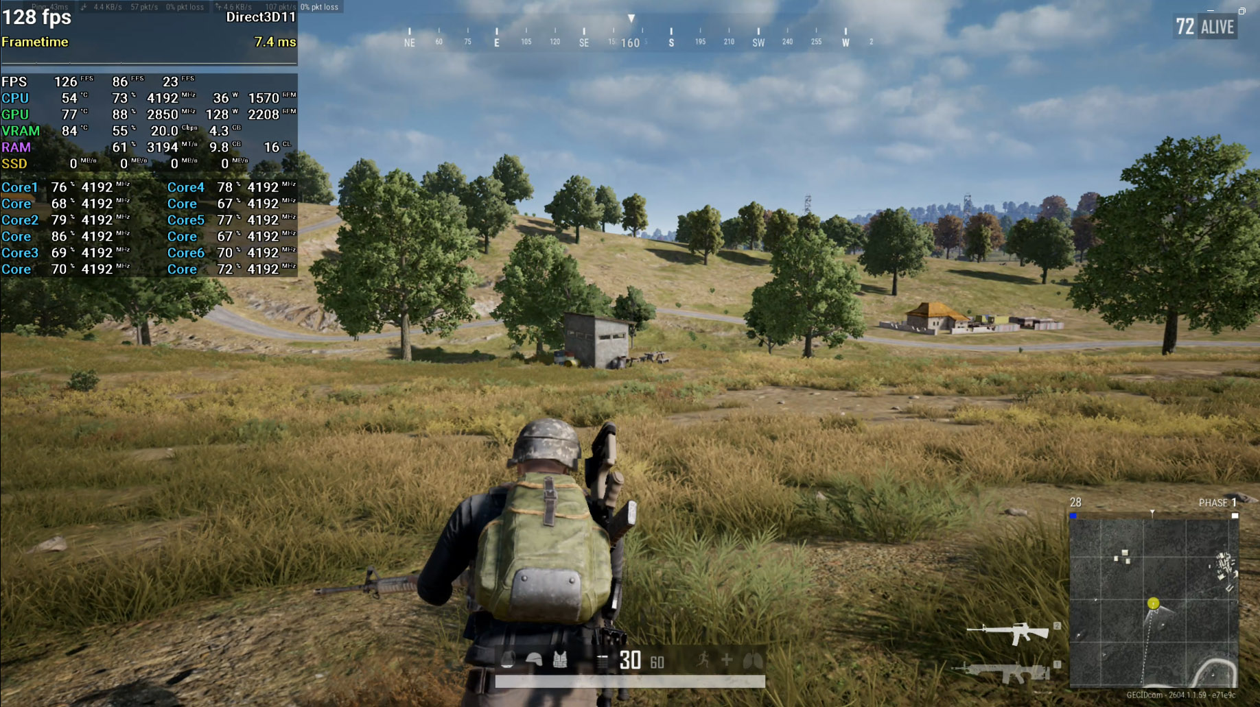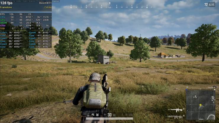 В PUBG, которую можно считать родоначальницей среди популярных королевских сражений, играется совершенно идеально в том числе на ультра настройках. Еще и с огромным более чем достаточным запасом частоты кадров. Хотя и показатель очень редких событий указывает на единичные подтормаживания — так что снова процессор немного не успевает по темпу подгрузки большой карты.