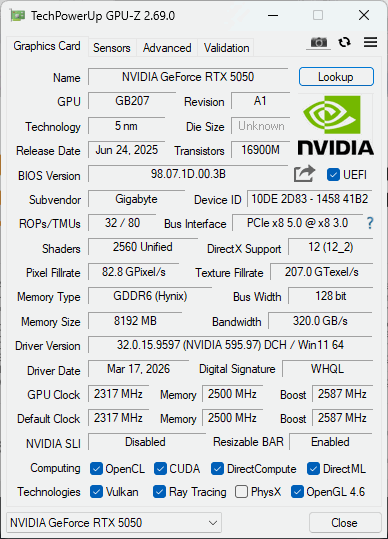 GIGABYTE GeForce RTX 5050 WINDFORCE OC 8 ГБ GDDR6 |