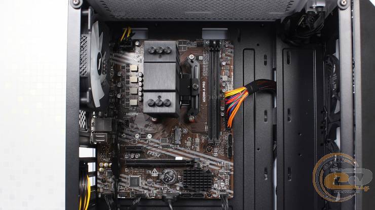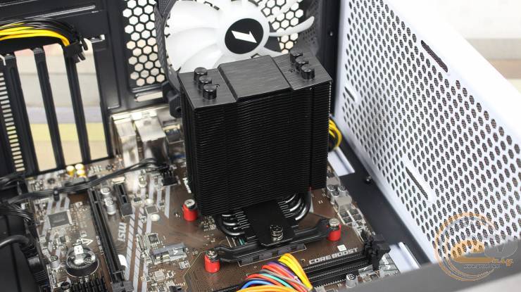 За охлаждение процессора отвечает ID-COOLING SE-903-XT Black – компактный башенный кулер, хорошо знакомый в бюджетном сегменте. Для Ryzen 5 4500 его возможностей должно быть достаточно, ведь сам процессор не относится к слишком горячим решениям. В то же время в нагрузке кулер может быть заметным по шуму, поэтому по желанию его можно заменить на более тихую модель.
