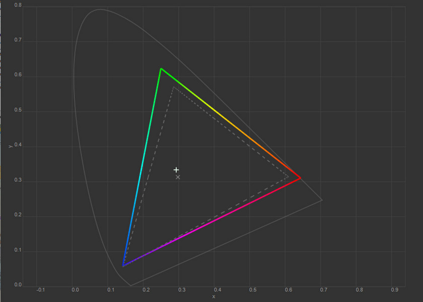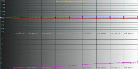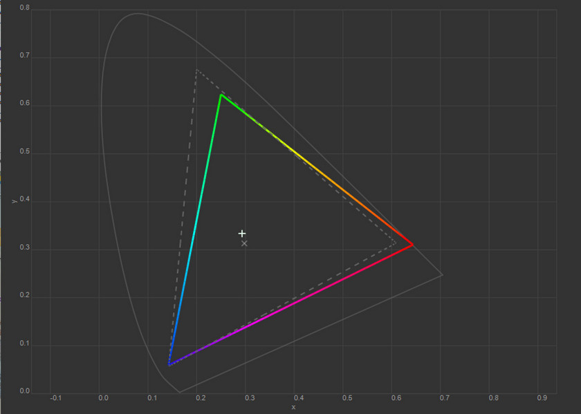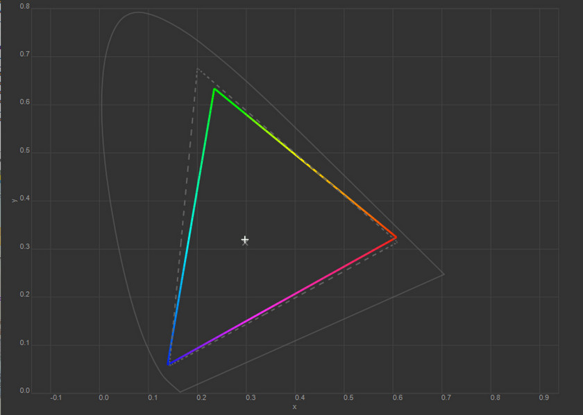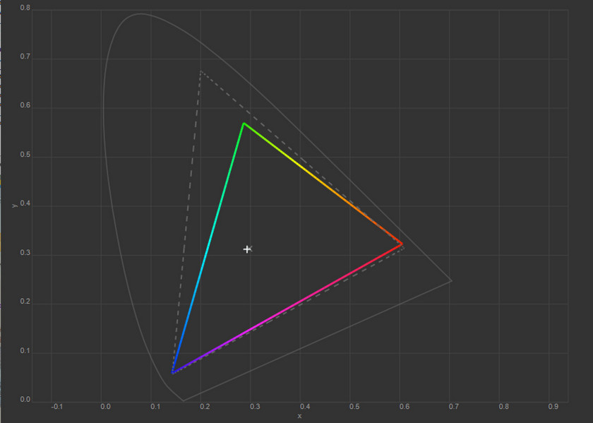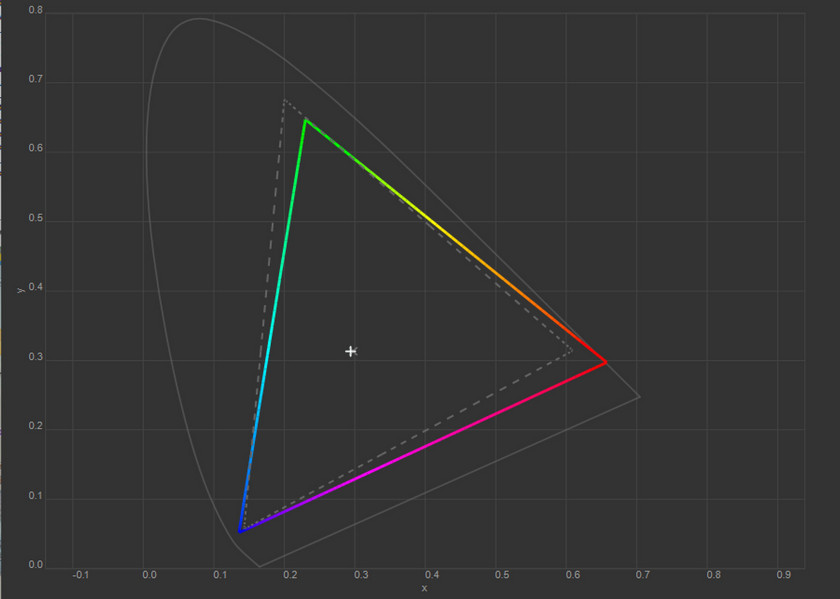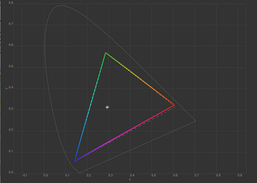 Отдельно выделяется только профиль DCI P3, где имеется небольшое отклонение по красному и синему каналам, но оно не выходит за пределы допустимого.
