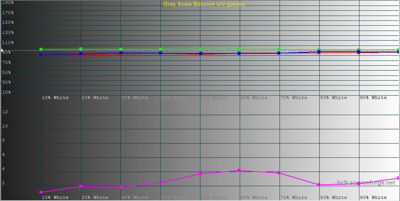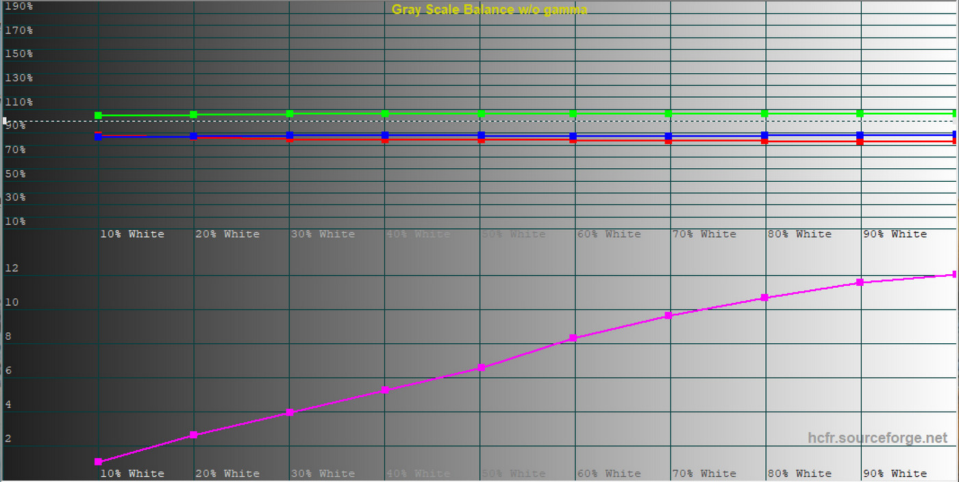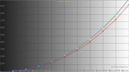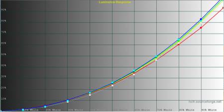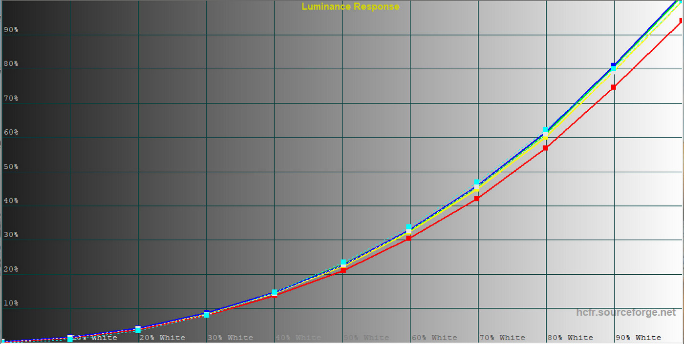 В профиле DICOM среднее значение гаммы достигает 2,91, а кривые проходят ниже эталонной. Это может привести к потере деталей в темных участках сцены, но такое поведение является специальной особенностью этого профиля, ведь он предназначен для просмотра медицинских изображений, где важно подчеркнуть контрастность в светлых участках.