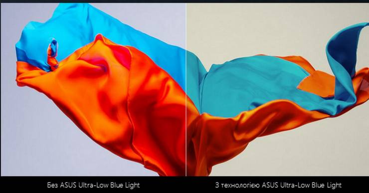 Технология ASUS Ultra-low blue light позволяет пользователям гибко настраивать яркость синего света в видимом спектре. Уровень фильтрации устанавливается пользователем через экранное меню.