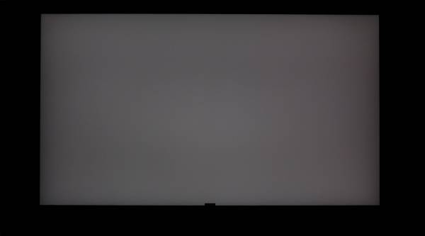 На белой заливке с максимальной яркостью отсутствуют какие-либо артефакты. При уменьшении яркости можно заметить лёгкое затемнение по краям, но без паразитных оттенков. Темно-серое поле также выглядит равномерно, без пятен или неровностей.