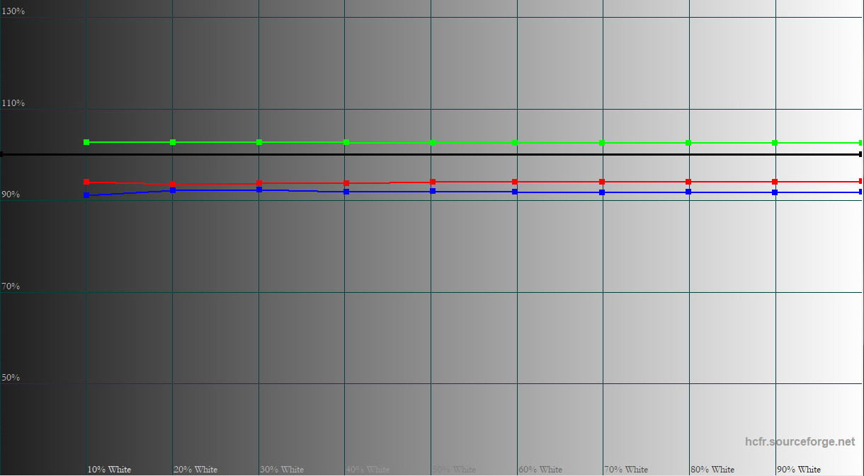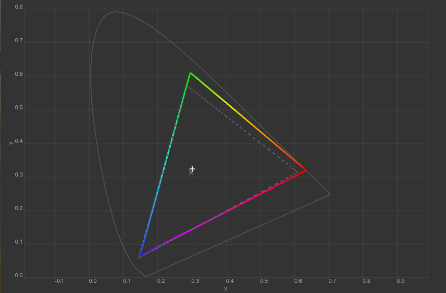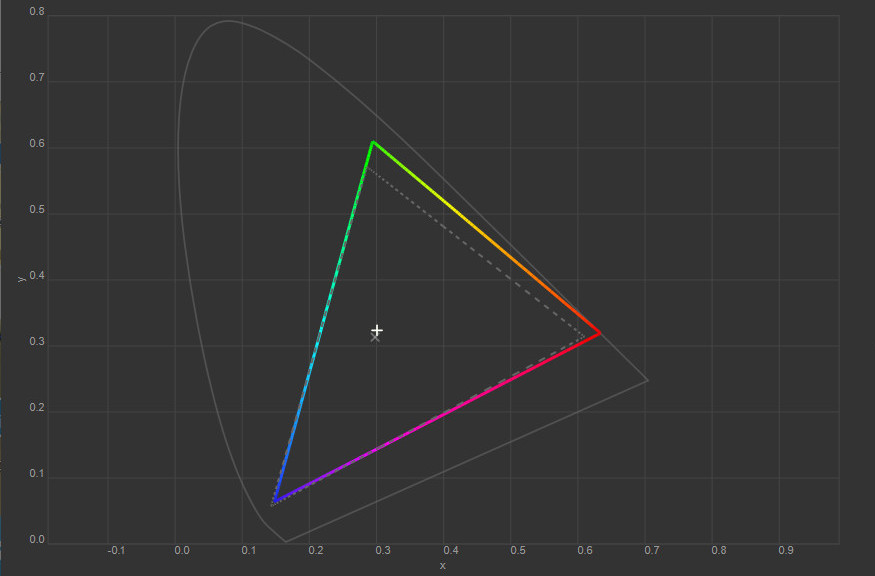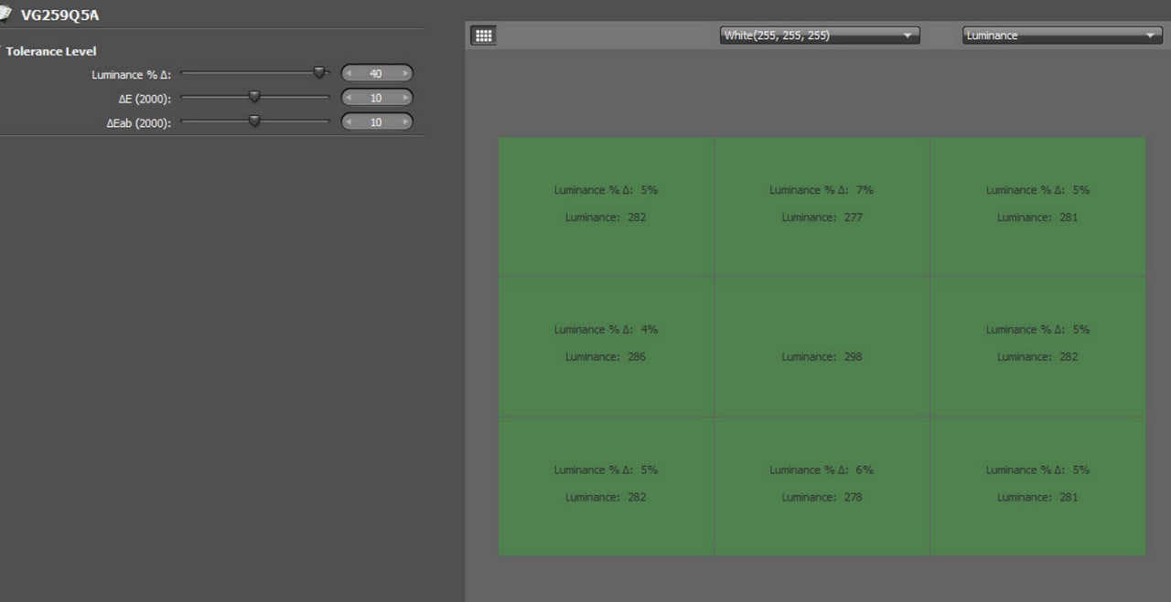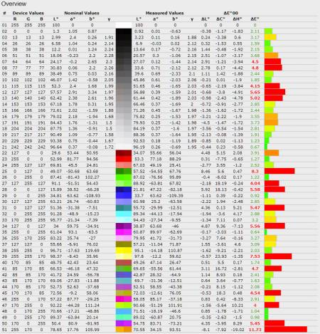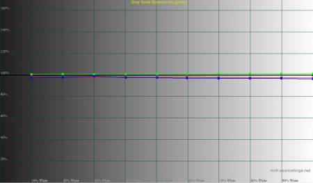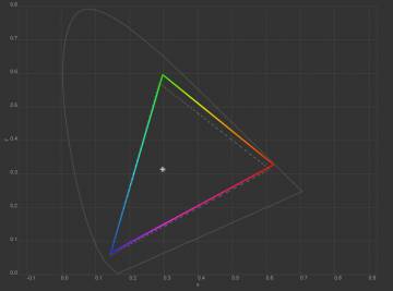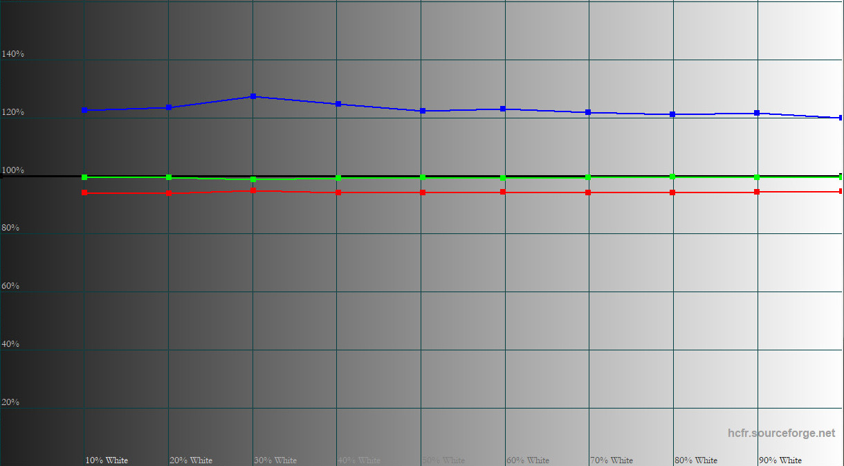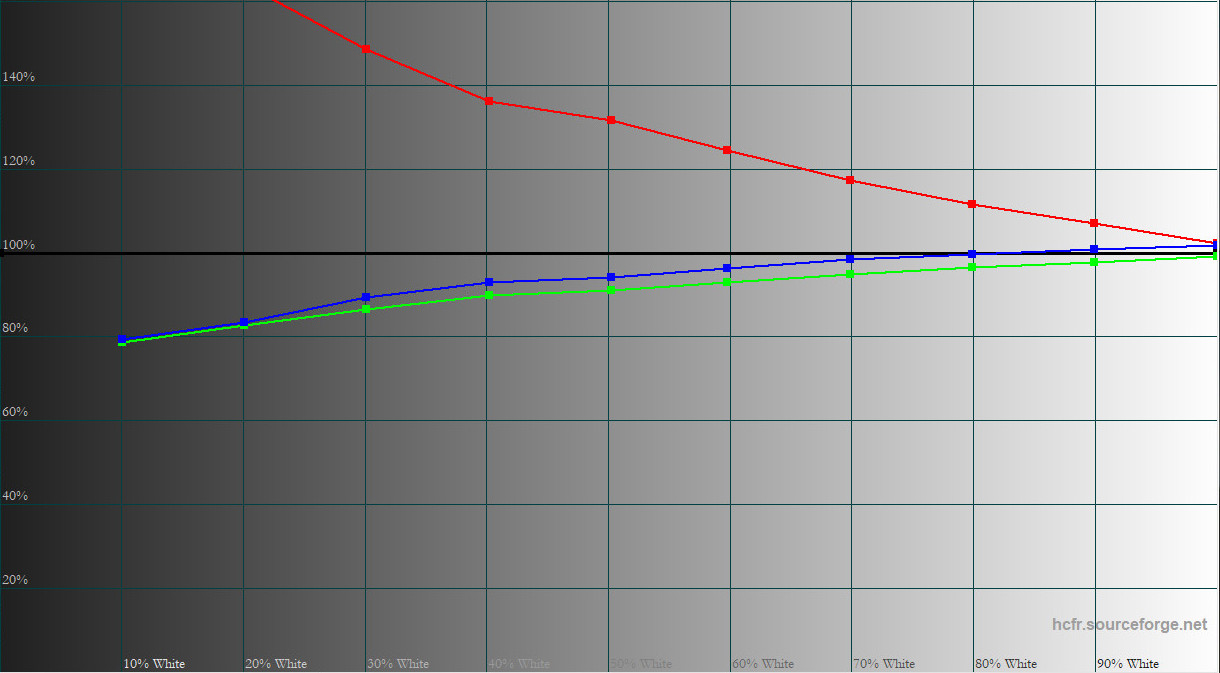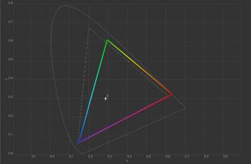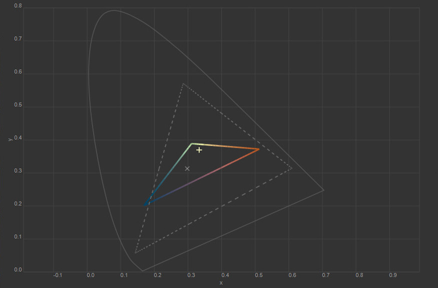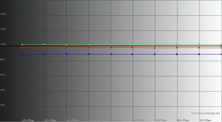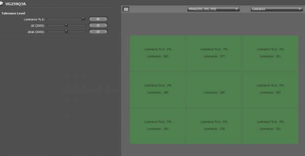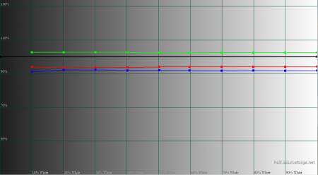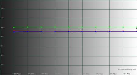 Отклонение температуры точки белого от центрального участка находится в диапазоне от -271 до +20 K, что вписывается в допустимые ±300 K для потребительских мониторов.