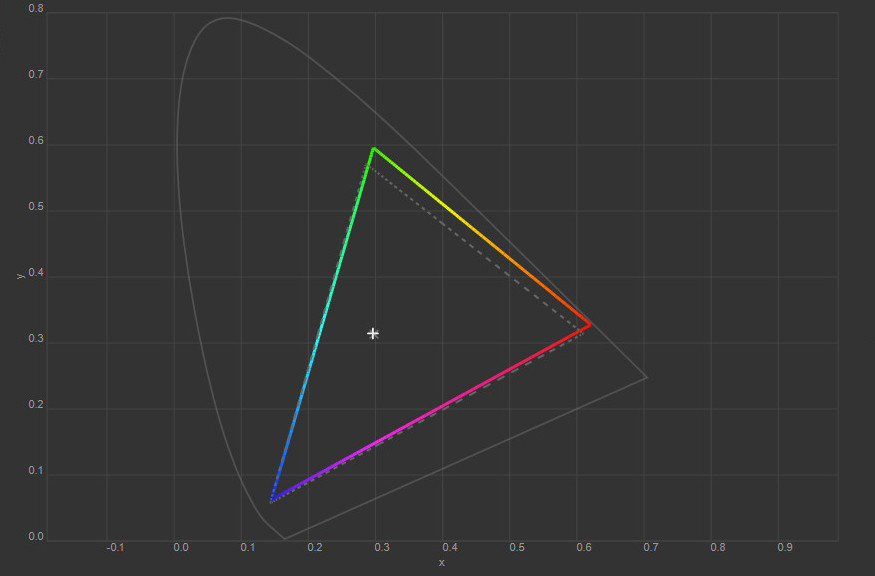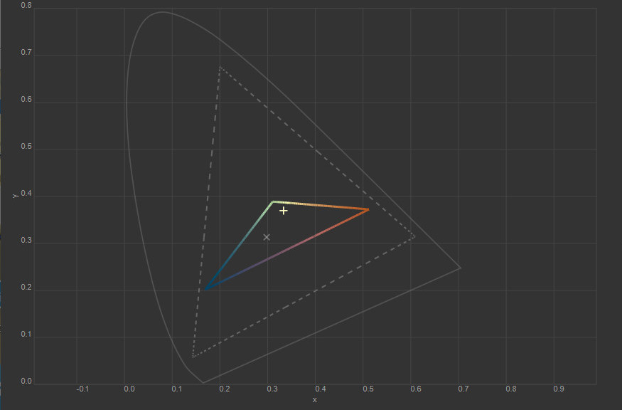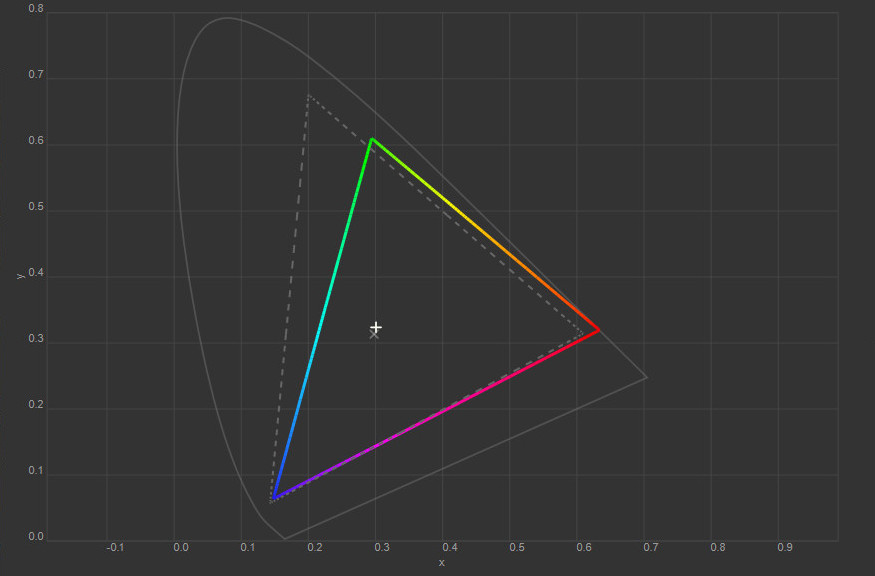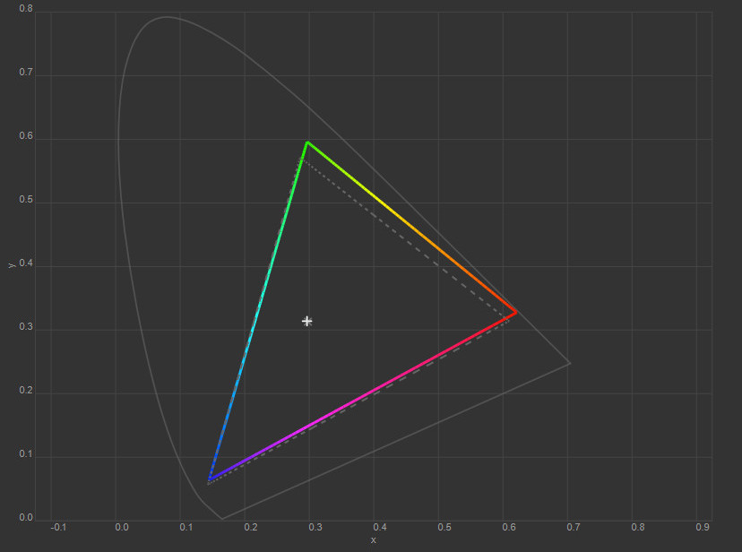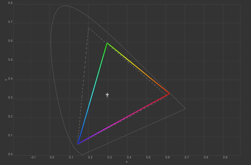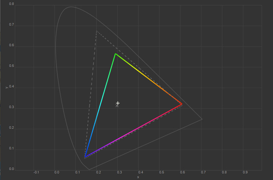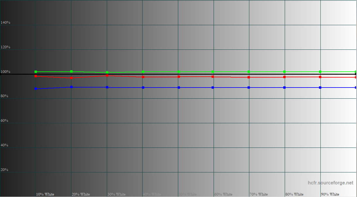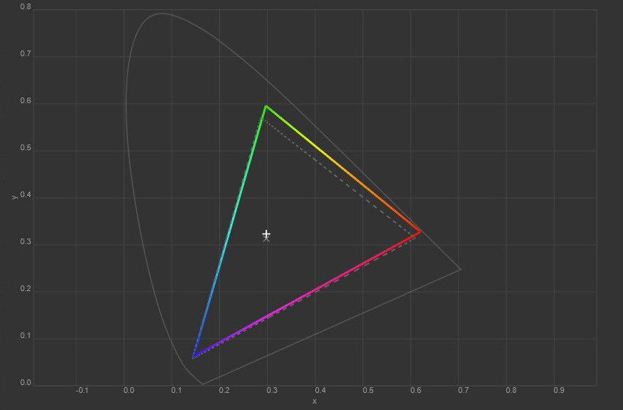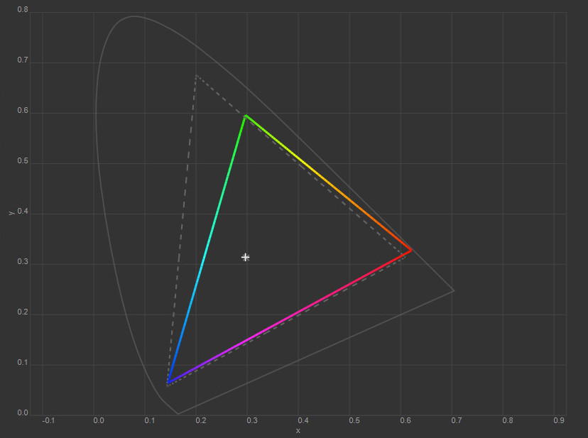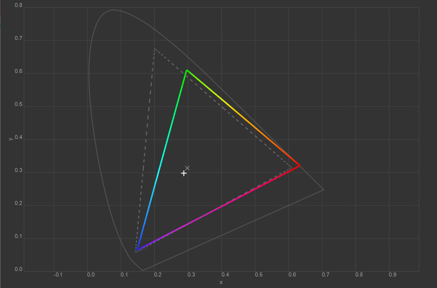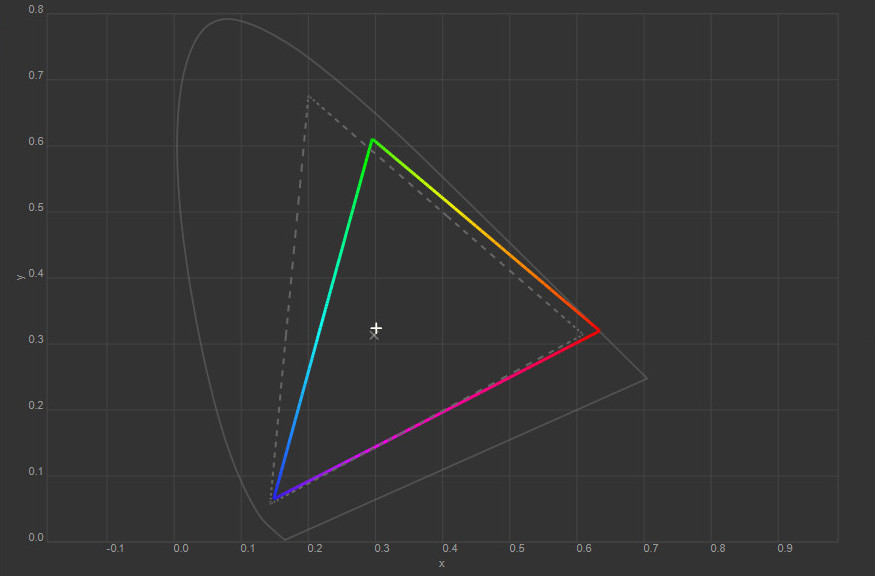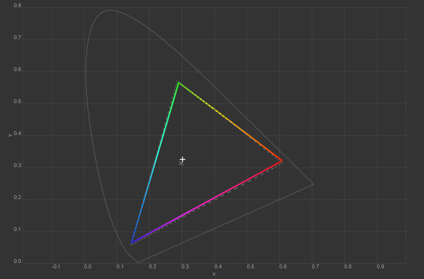 Отклонение температуры точки белого от центрального участка находится в диапазоне от -271 до +20 K, что вписывается в допустимые ±300 K для потребительских мониторов.