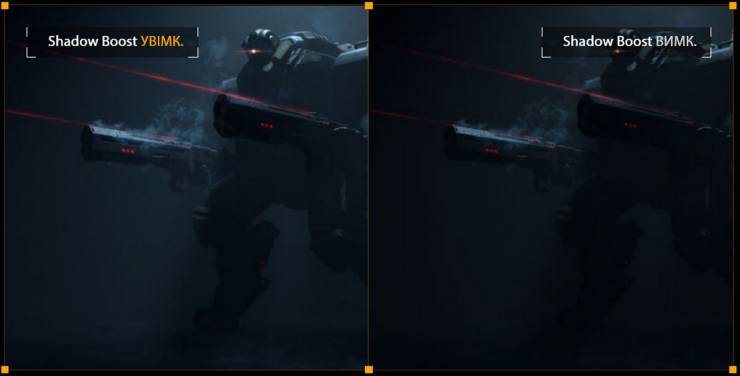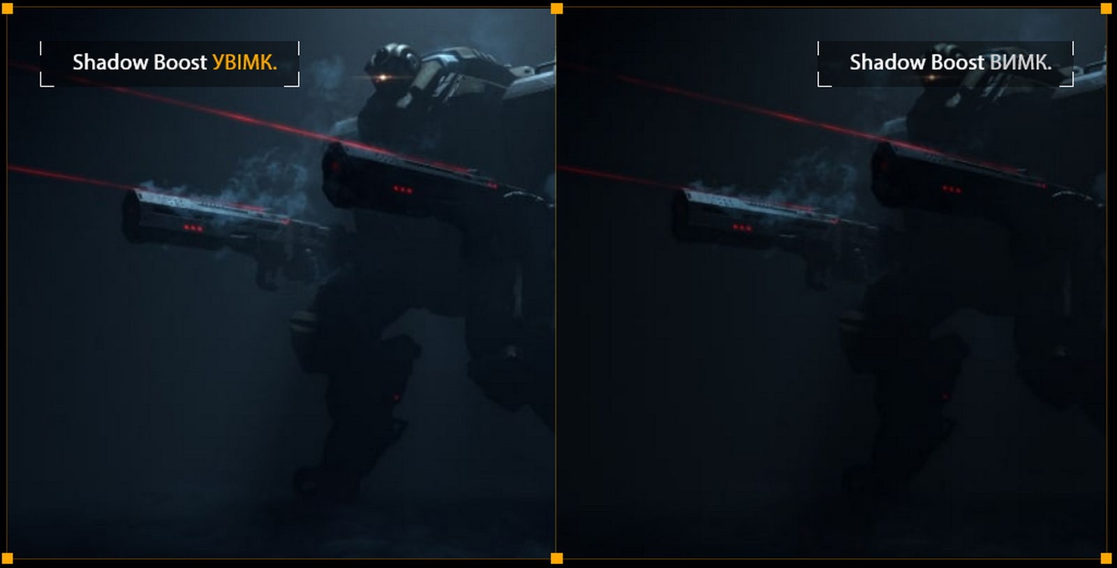 Технология Shadow Boost повышает видимость темных участков сцены, что увеличивает шансы заметить скрывающегося в тени противника. Светлые области при этом остаются практически неизменными – баланс изображения не нарушается.